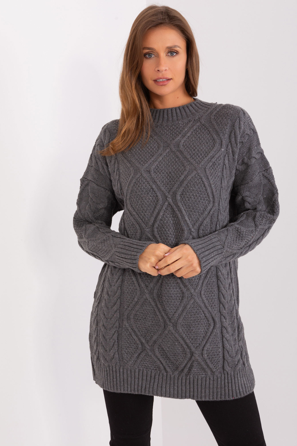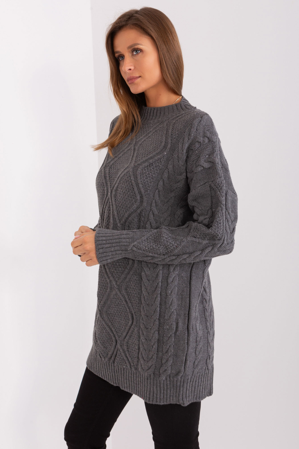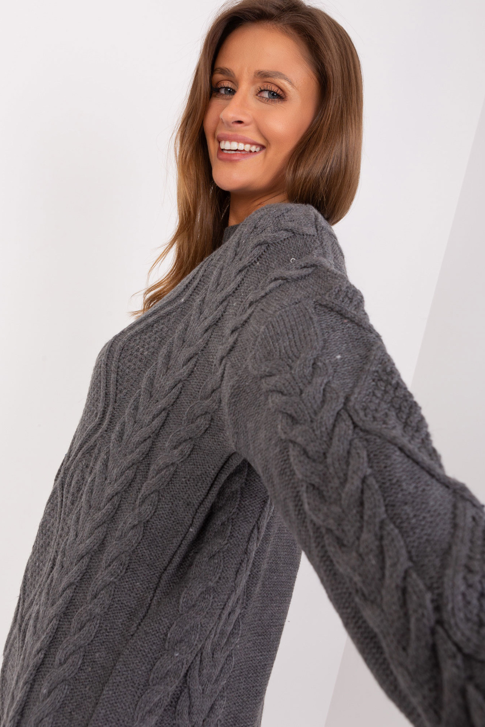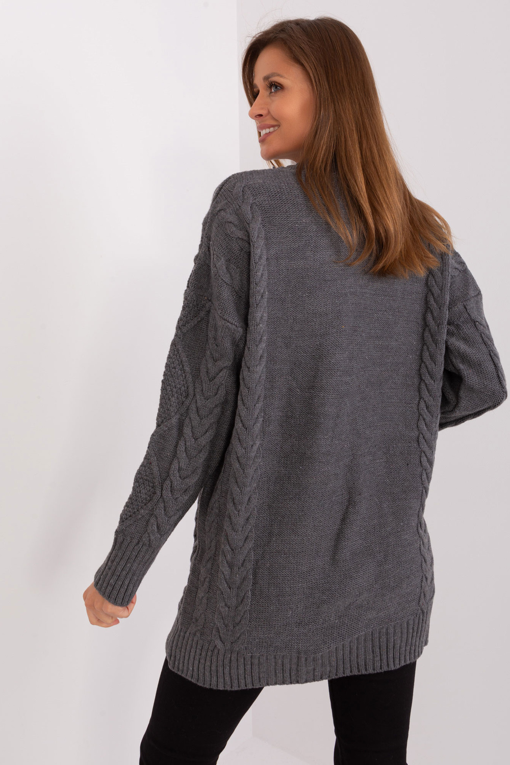 Modelis dėvi vieno dydžio dydį. Modelio išmatavimai: ūgis 176 cm, krūtinė 85 cm, juosmuo 64 cm, klubai 92 cm.