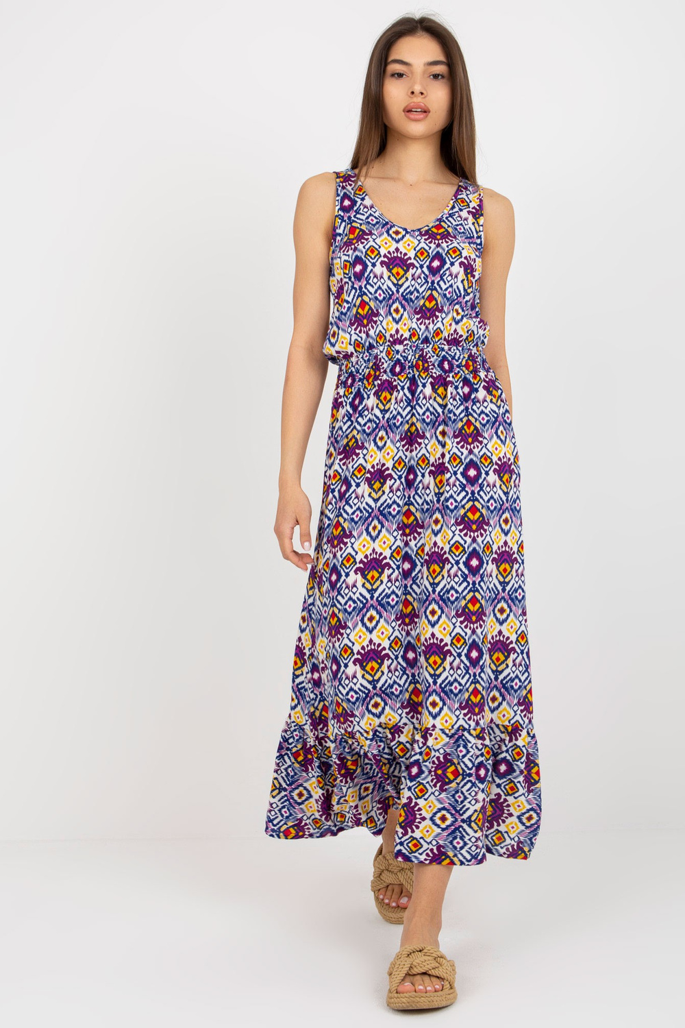 Purpurinė midi suknelė su viskozės raštais FRESH MADE.