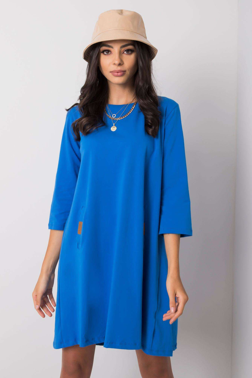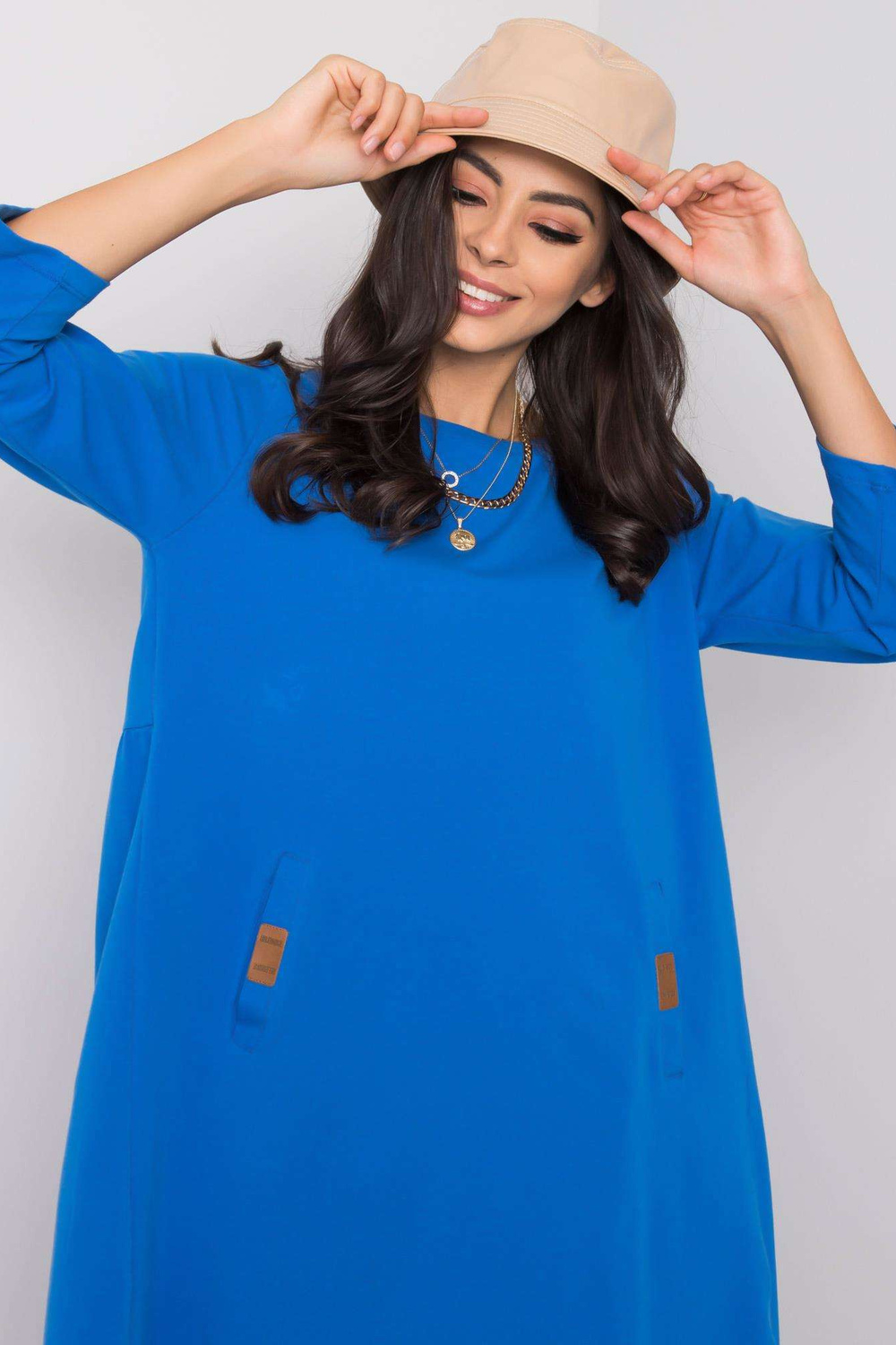 Suknelės matmenys S/M dydžiu, matuojamas plokščias: plotis ties pažastimis - 53 cm, bendras ilgis - 84 cm, rankovių ilgis - 41 cm
