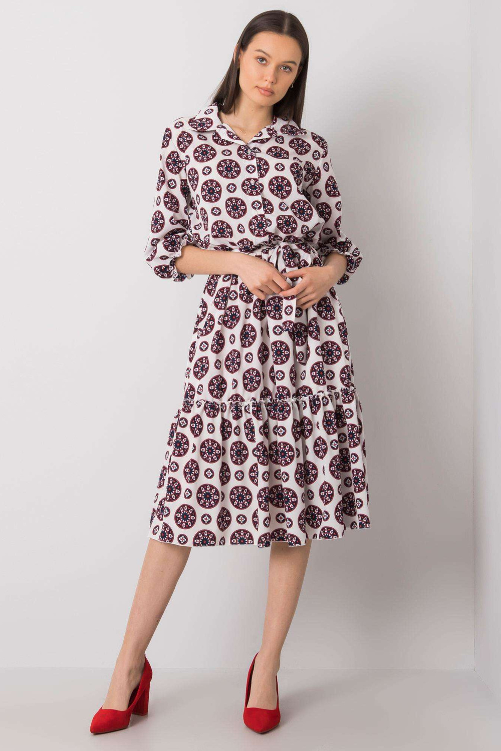 Balta ir raudona suknelė su Avelinos raštais.