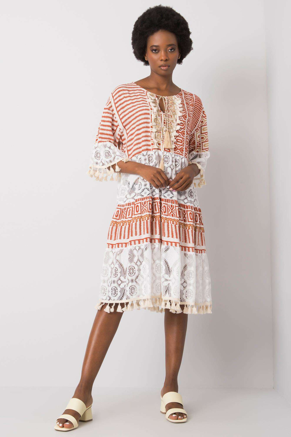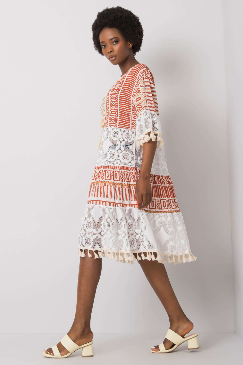 Vieno dydžio suknelės matmenys išmatuoti plokščiai: plotis po pažastimis - 49 cm, bendras ilgis - 90 cm