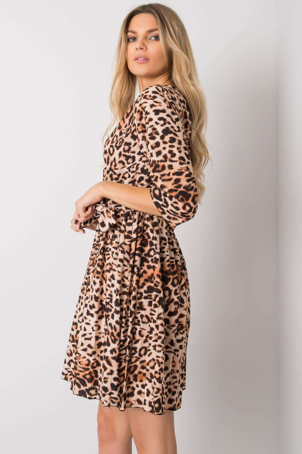 Smėlio ir juoda Abhiri leopterninė suknelė.