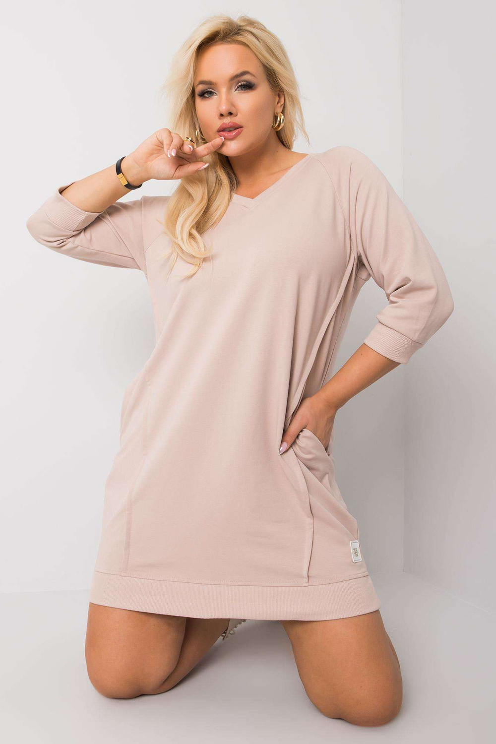Blyškios kavos medvilnės plius dydžio Karissa suknelė