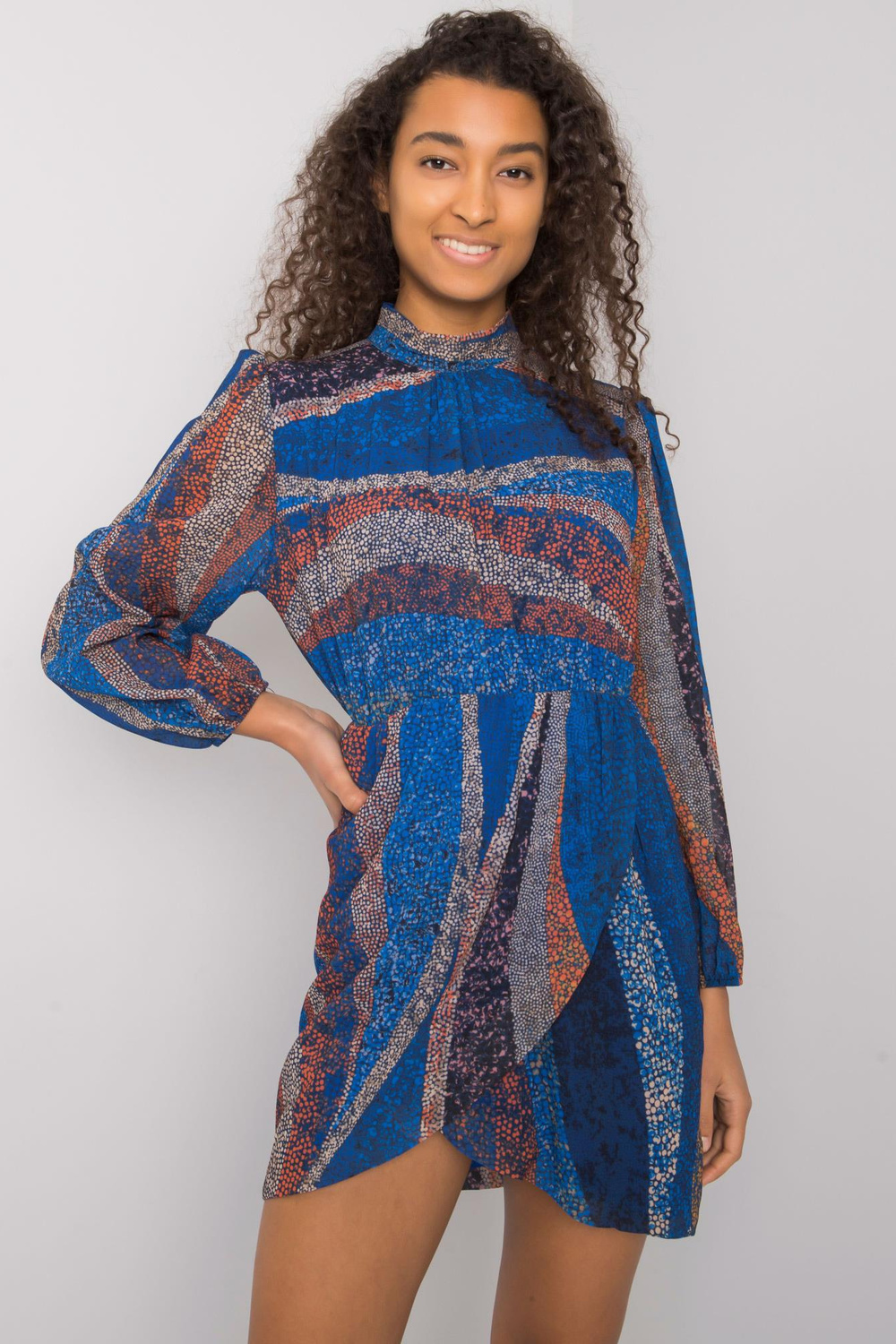 Tamsiai mėlyna moteriška suknelė su Brooks raštais.