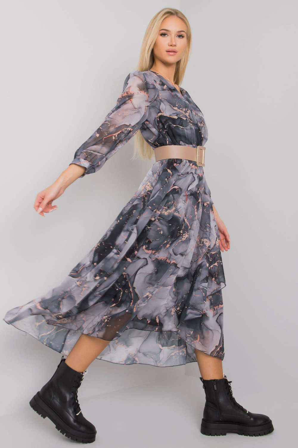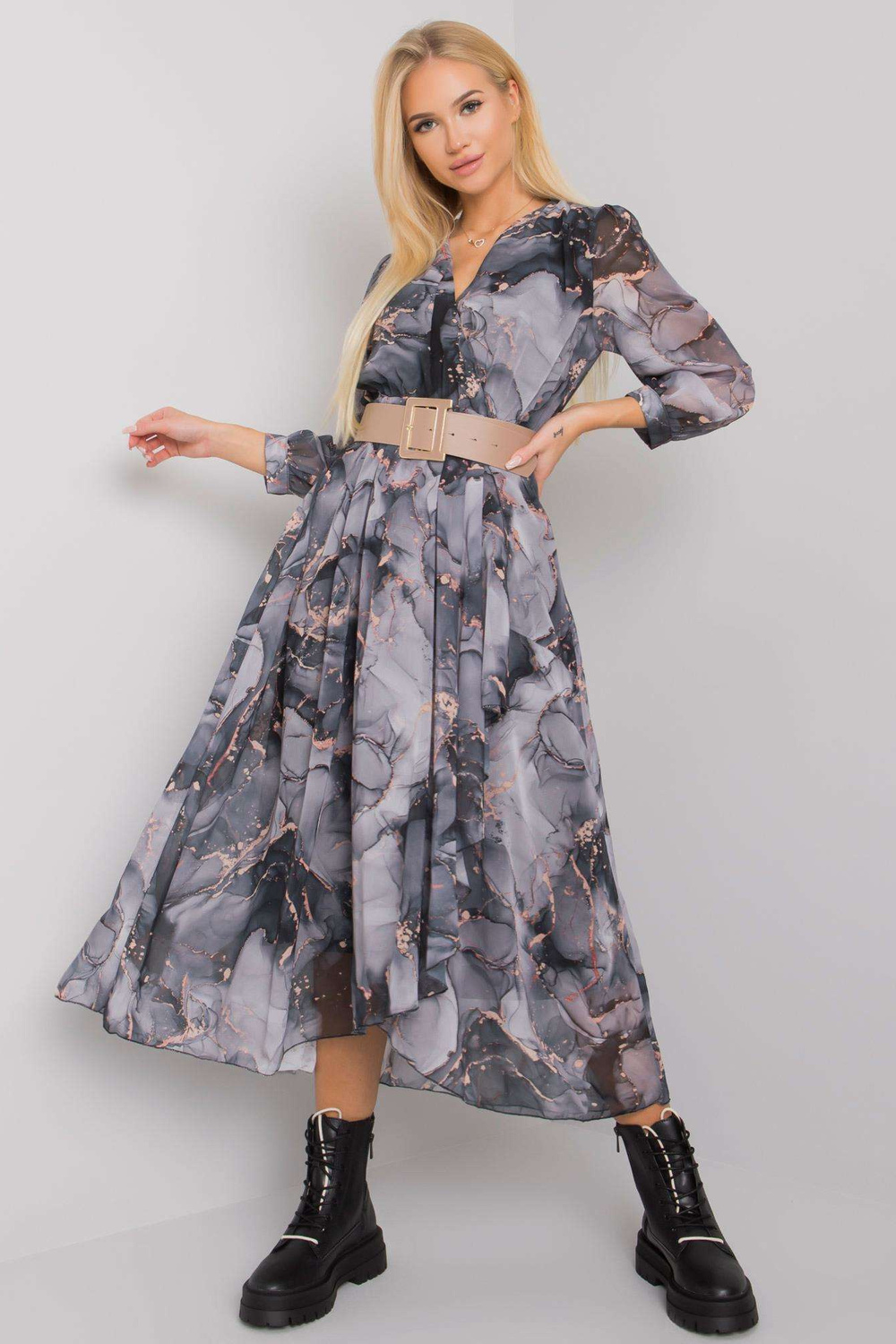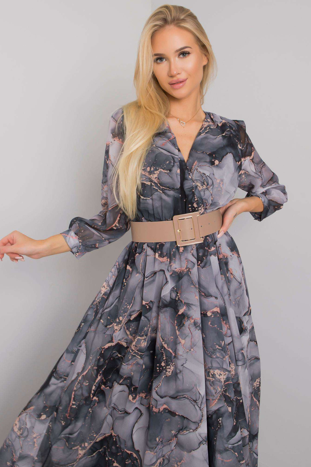 S dydžio suknelės matmenys matuojami plokščiai: plotis po pažastimis - 45 cm, bendras ilgis - 130 cm, rankovių ilgis - 51 cm