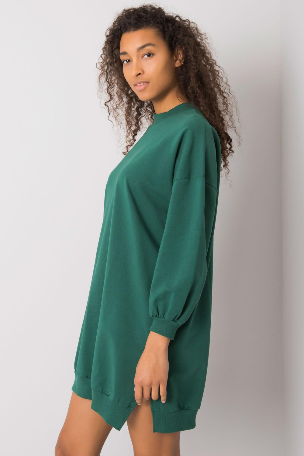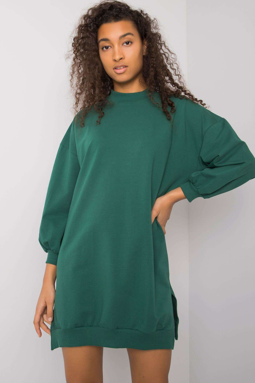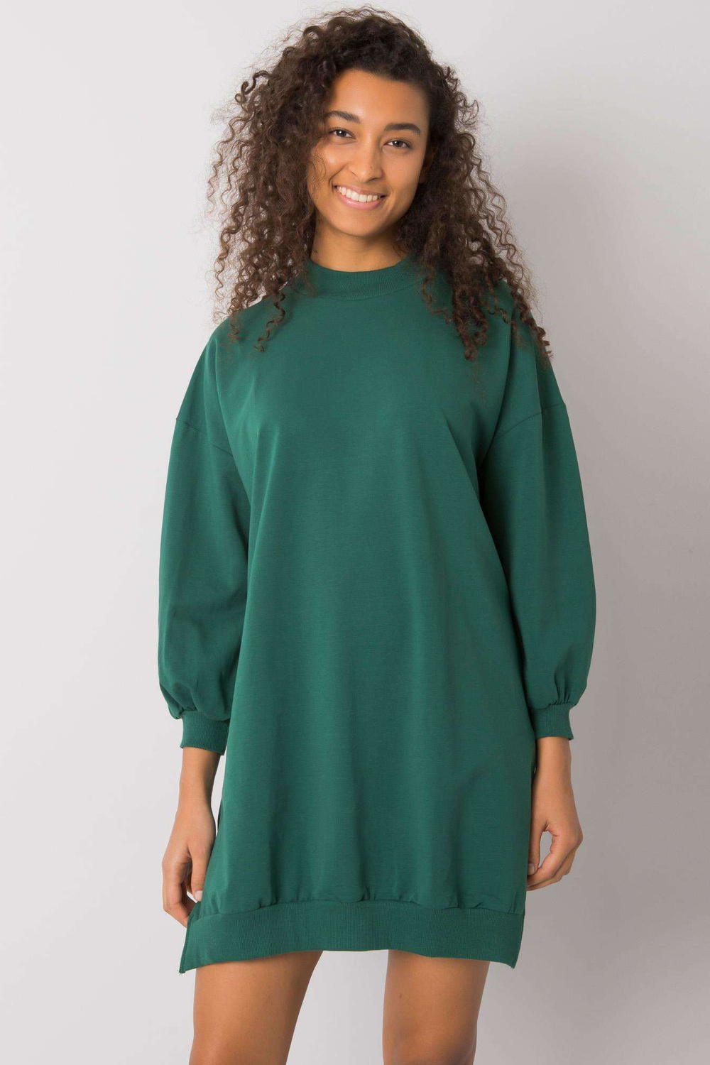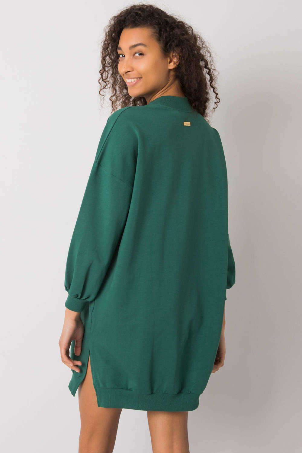 S dydžio suknelės matmenys, matuojami plokščiai: plotis po pažastimis - 59 cm, bendras ilgis - 80 cm, rankovių ilgis - 55 cm