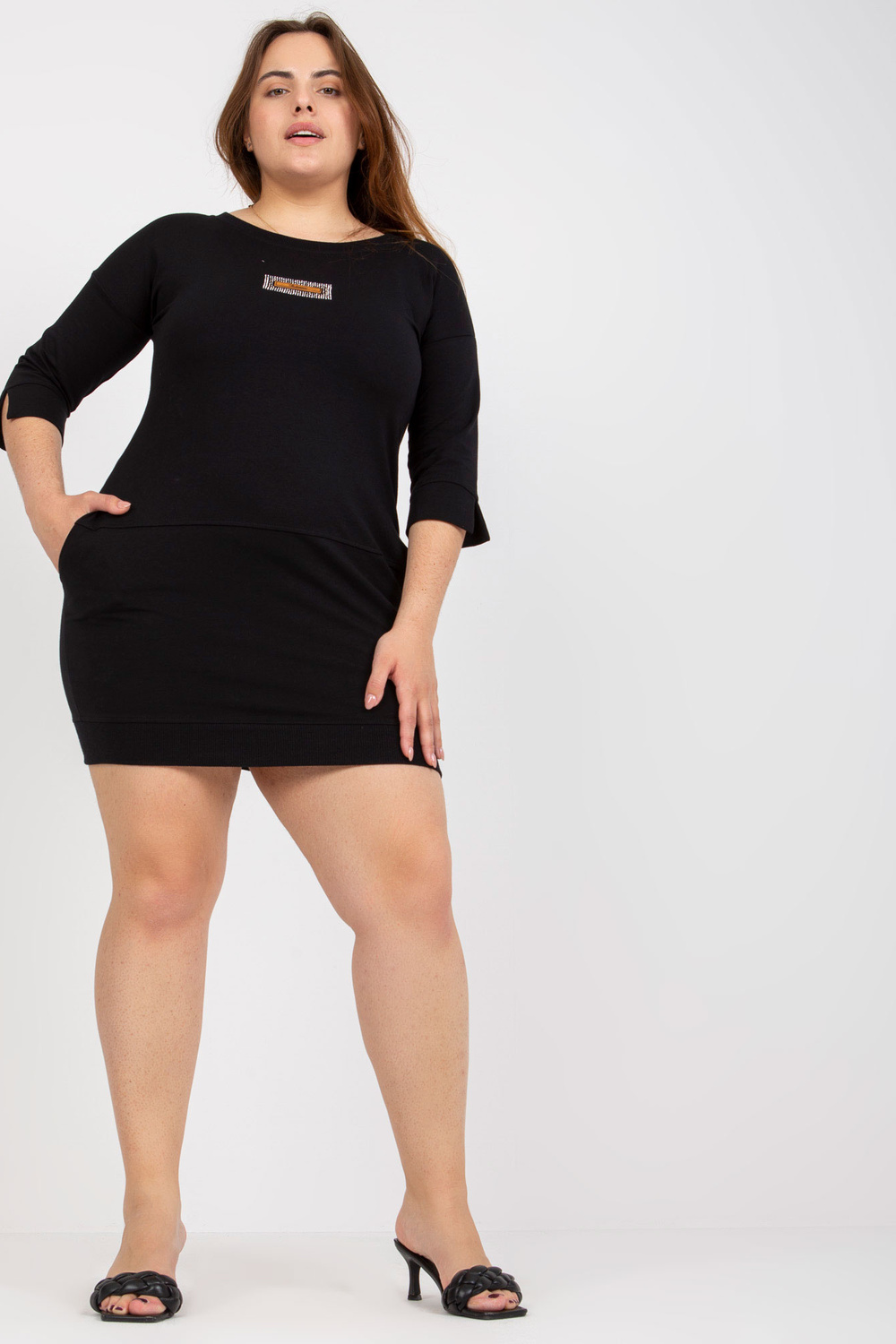 Juoda mini megztinio didelio dydžio suknelė su kišenėmis.