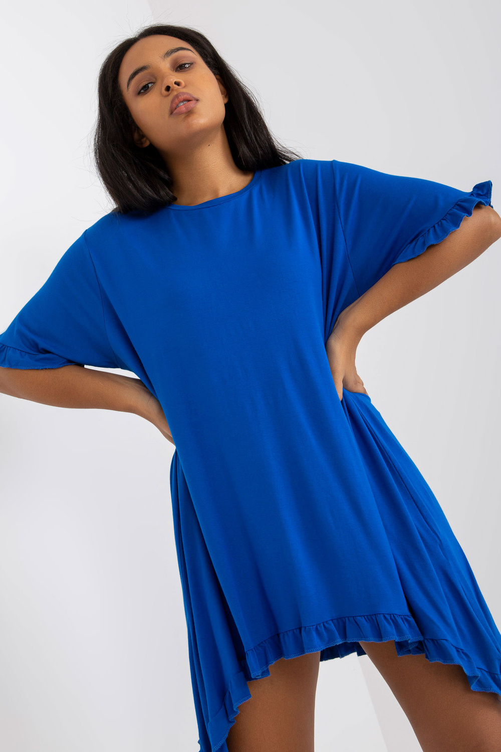Tamsiai mėlyna plius dydžio mini suknelė su viskoze