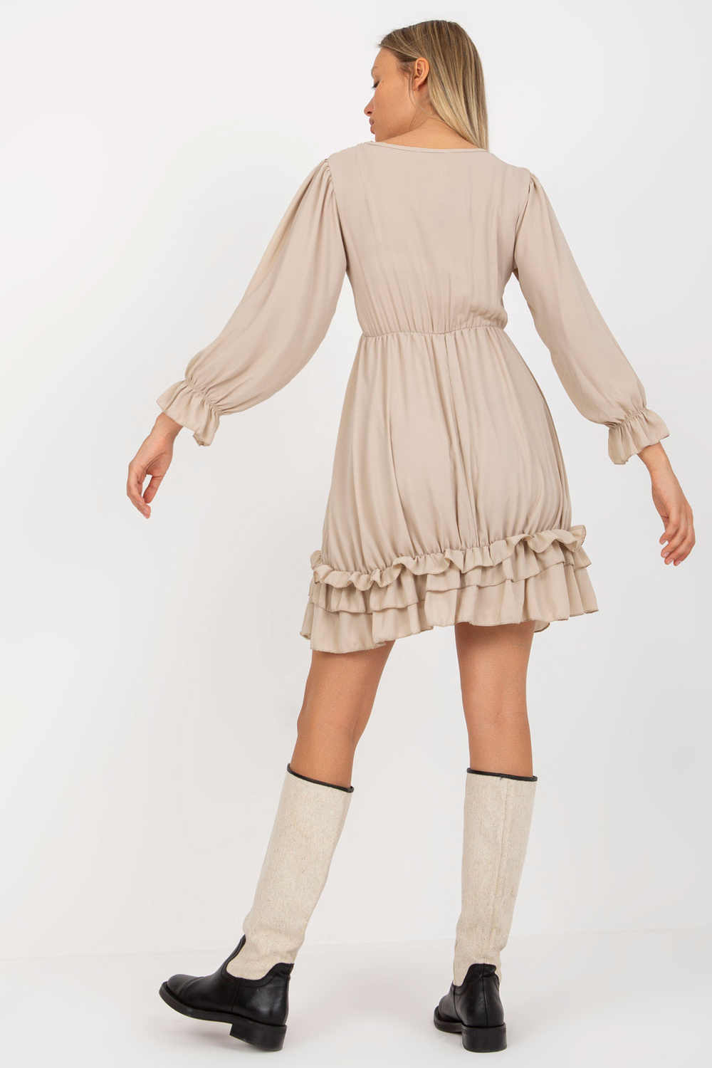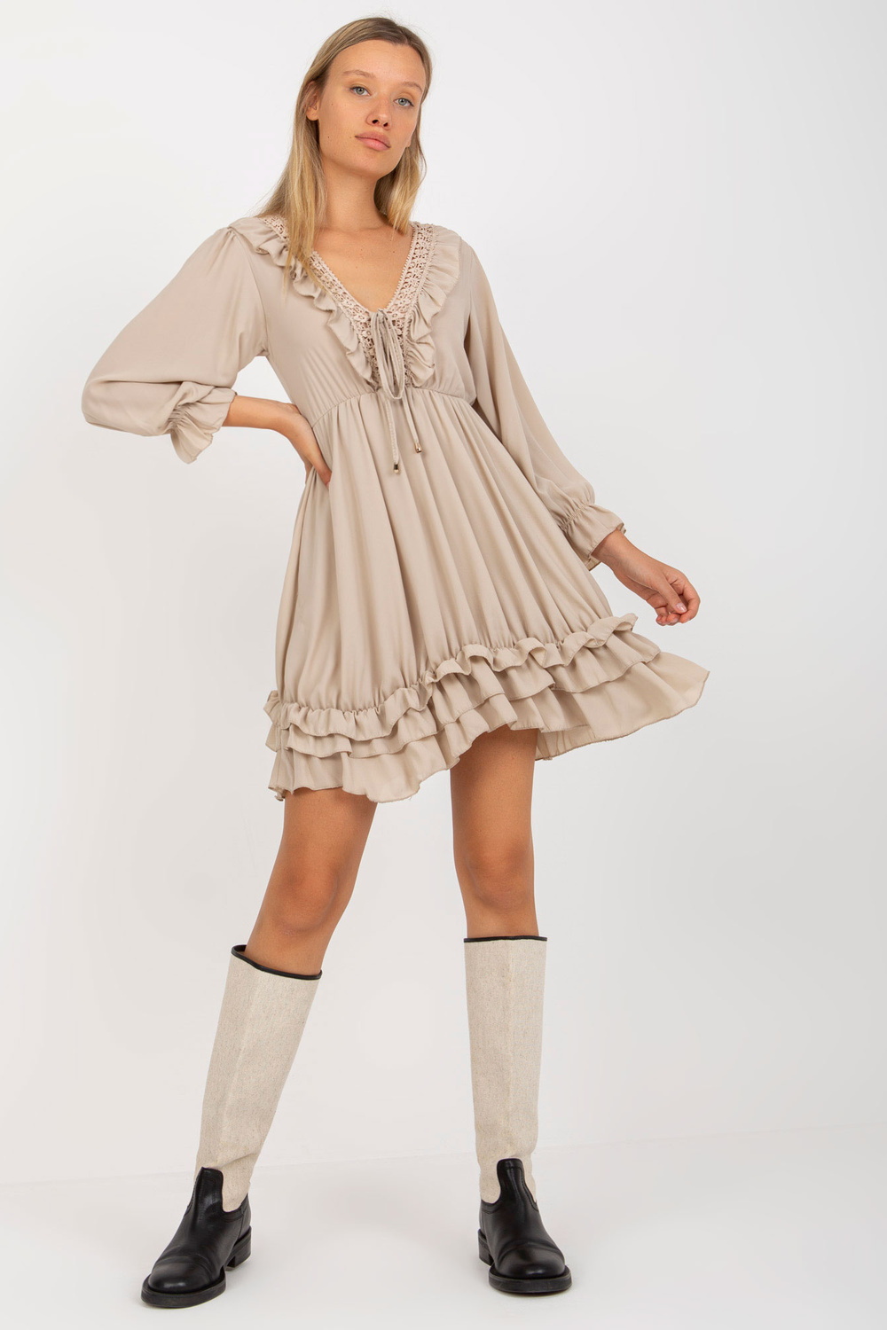 Beigeboho suknelė su raukiniais ir mazgu OCH BELLA iškirpte .