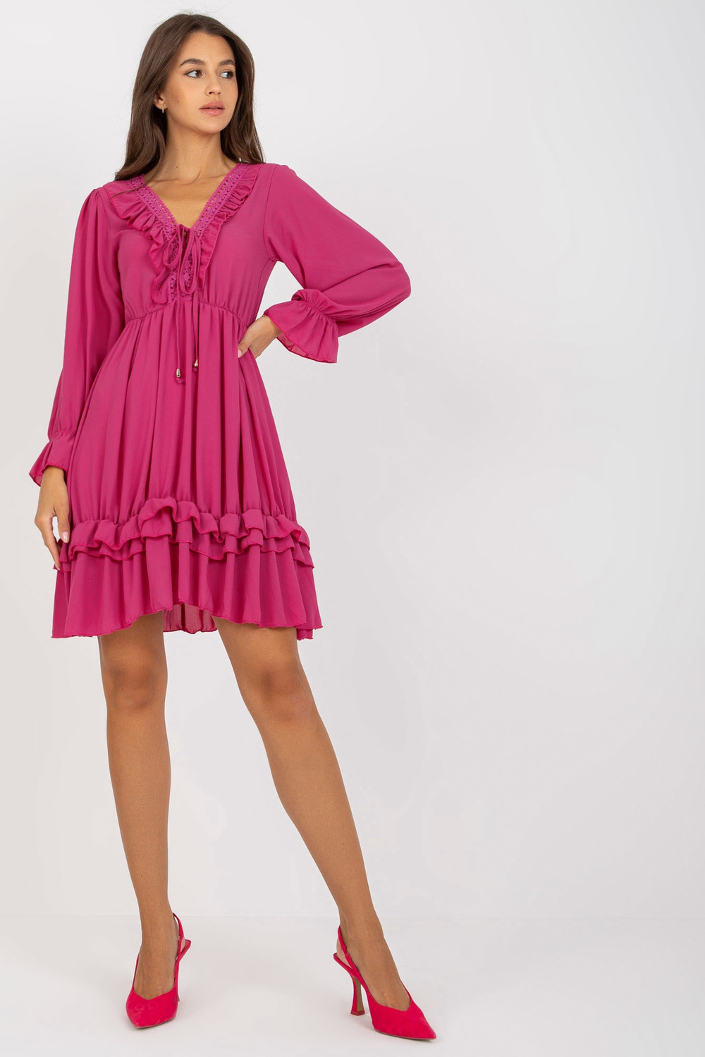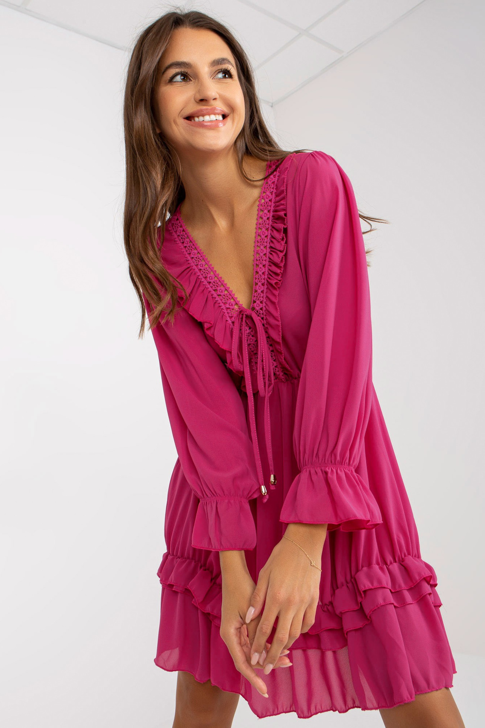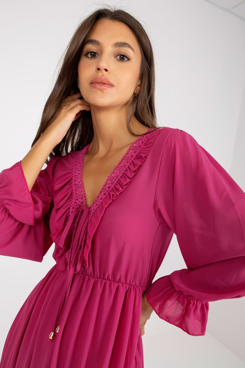 Fuchsiaboho suknelė su raukiniais ir mazgu OCH BELLA iškirpte .