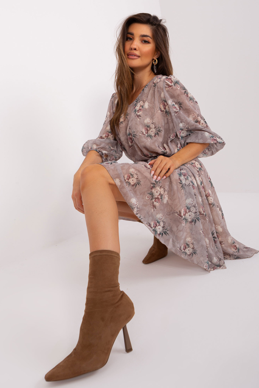 Suknelės matmenys S/M dydžiu matuojant plokščią: plotis po pažastimis - 64 cm, rankovės ilgis - 47 cm, bendras ilgis - 102 cm.