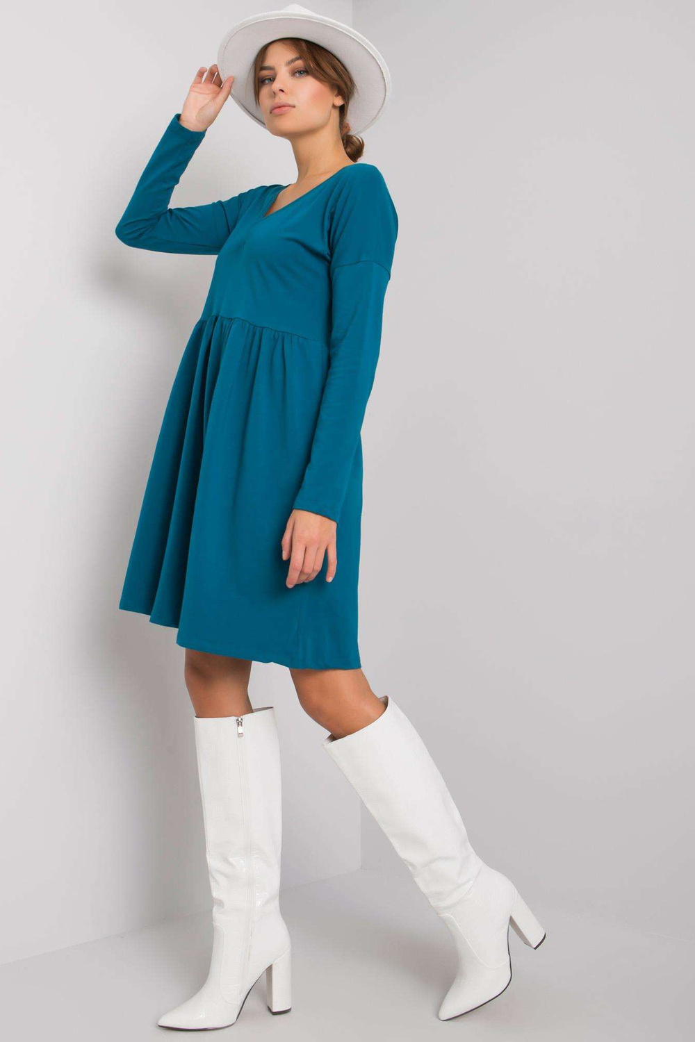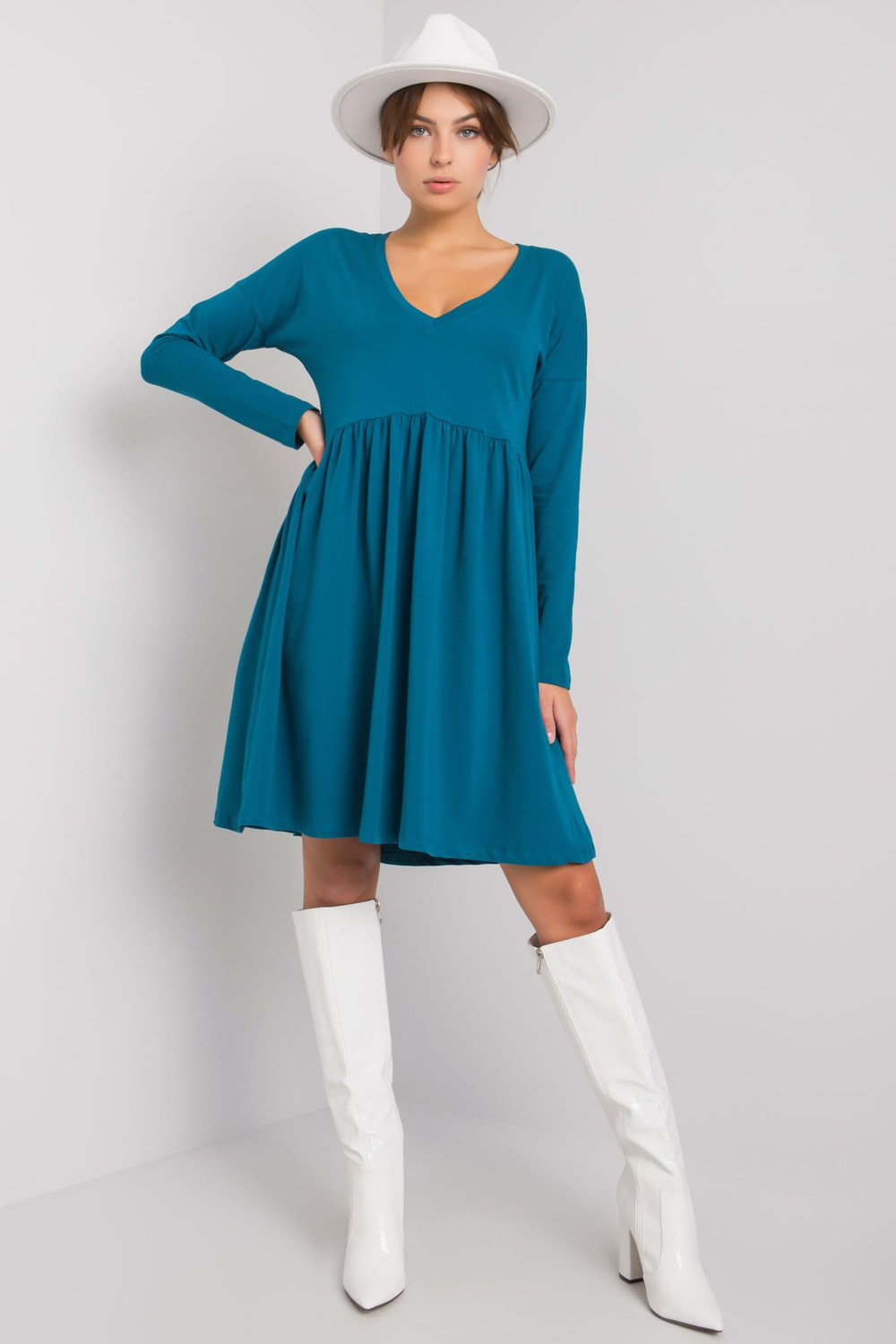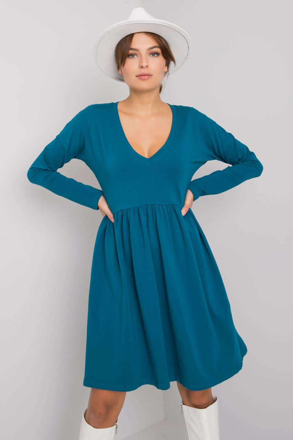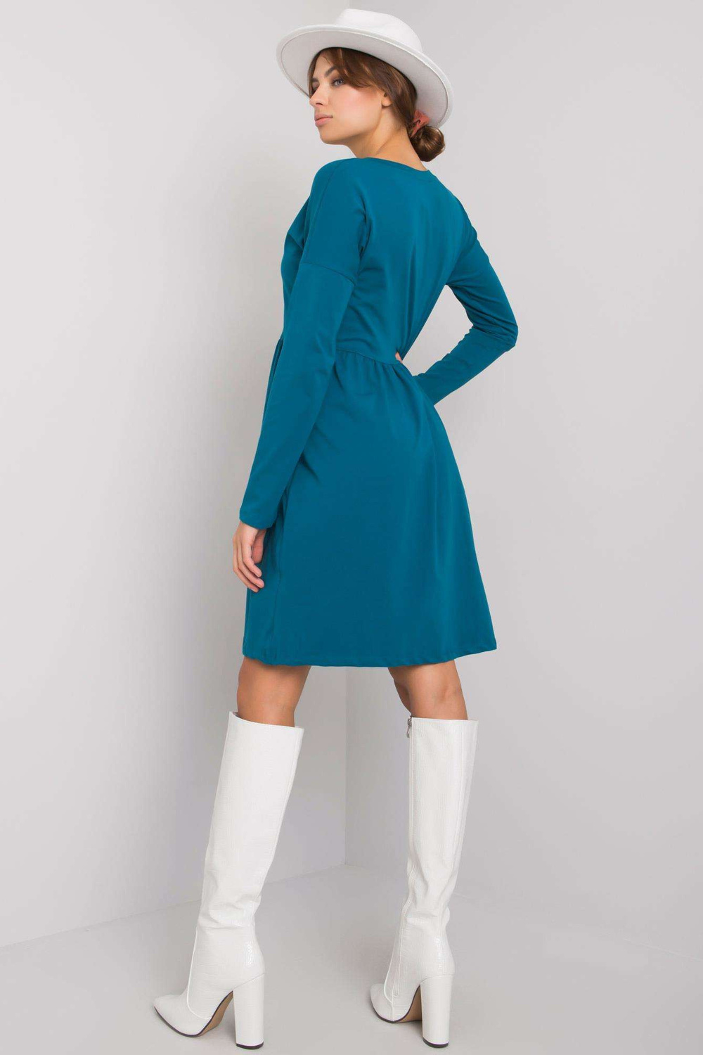 Suknelės matmenys S dydžio, matuojamas plokščias: pažasties plotis - 47 cm, bendras ilgis - 90 cm, rankovių ilgis - 59 cm