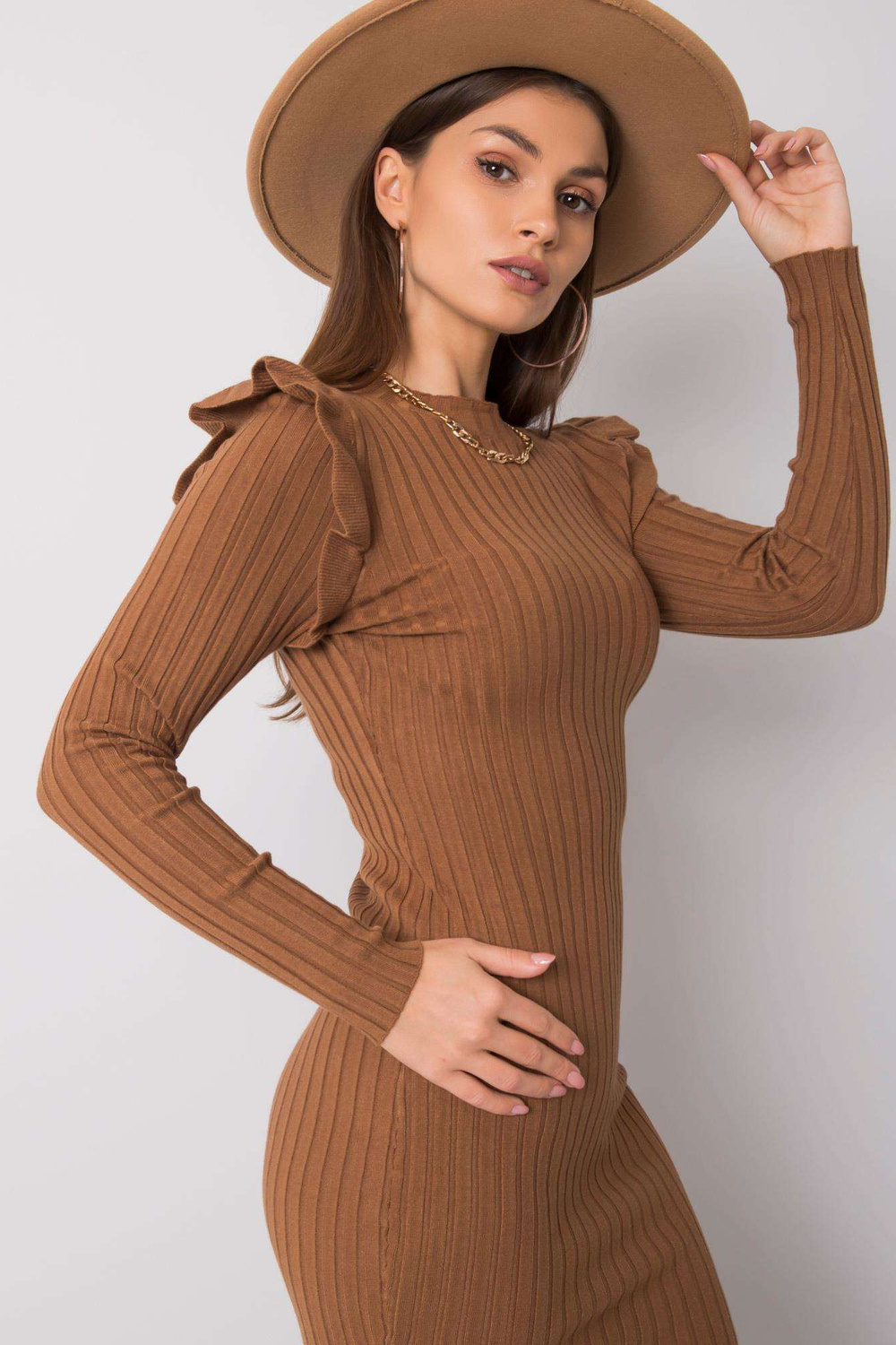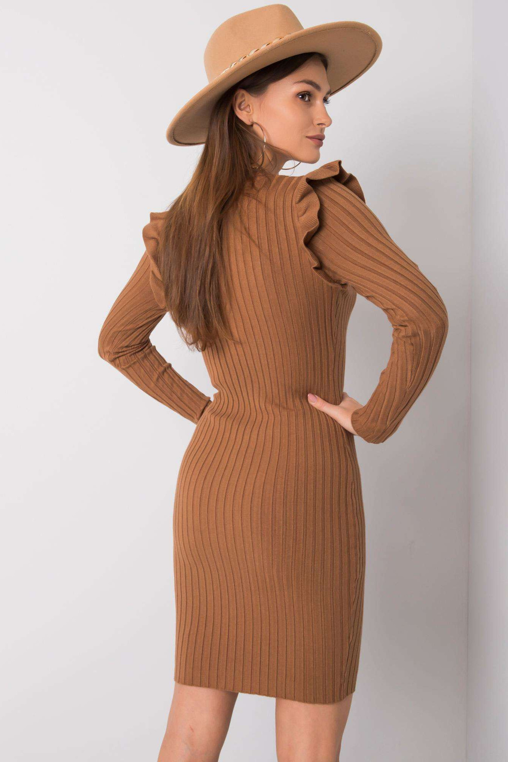 OH BELLA Šviesiai ruda dryžuota suknelė su raukiniais .