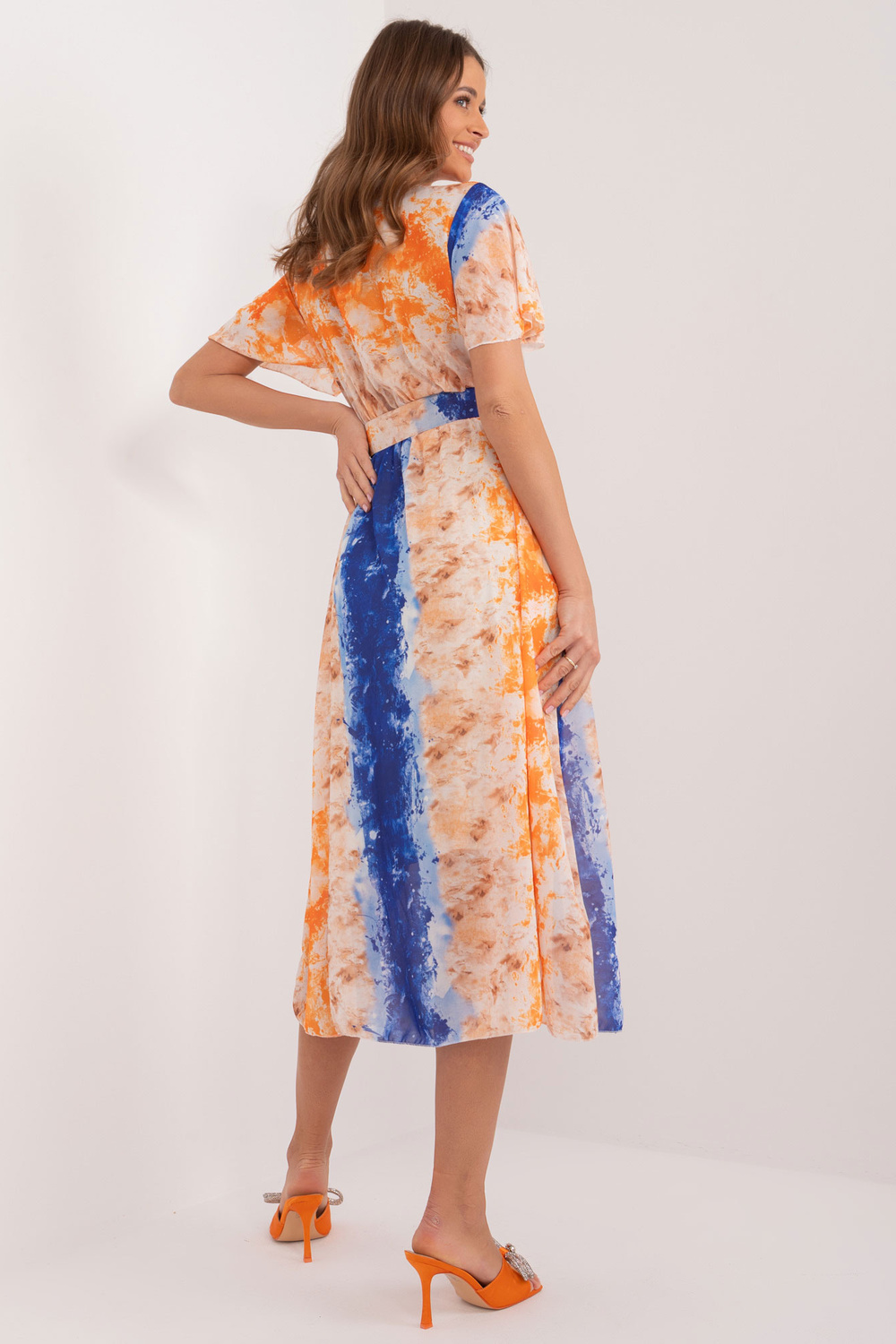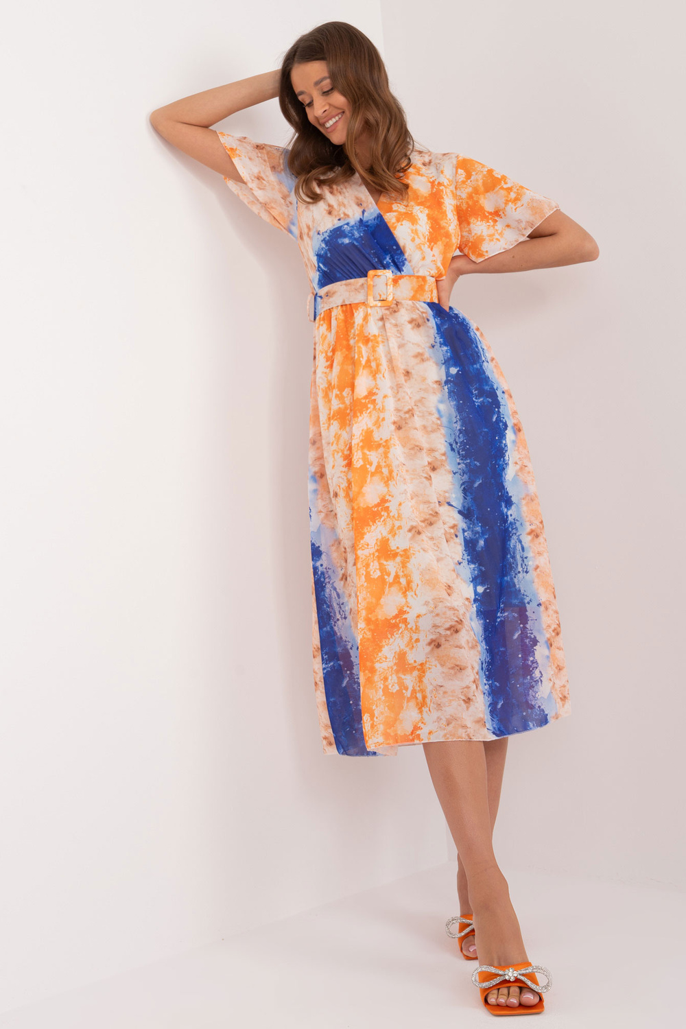 Suknelės matmenys vieno dydžio, matuojamas plokščias: pažasties plotis - 45 cm, bendras ilgis - 122 cm, rankovių ilgis - 23 cm