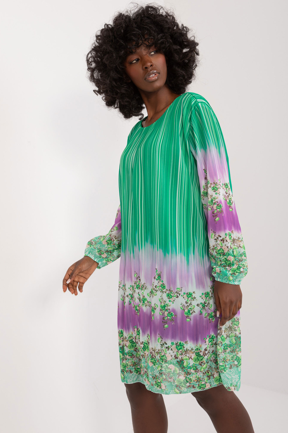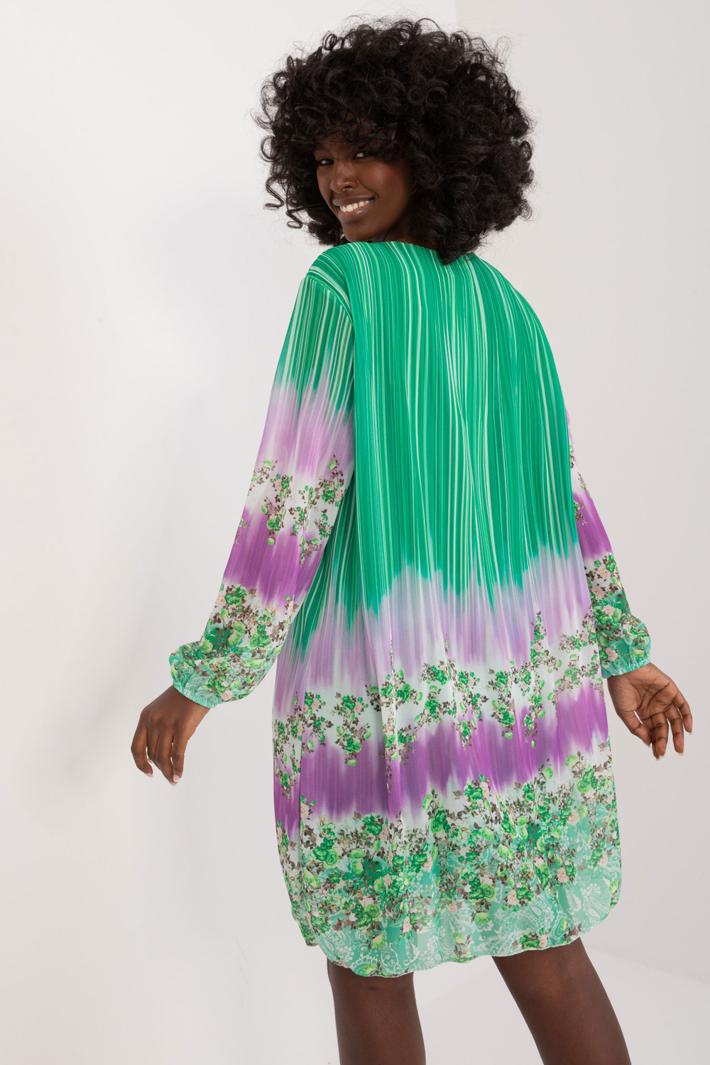 Vieno dydžio suknelės matmenys išmatuoti plokščiai: pažasties plotis - 52 cm, rankovių ilgis - 54 cm, bendras ilgis - 86 cm.