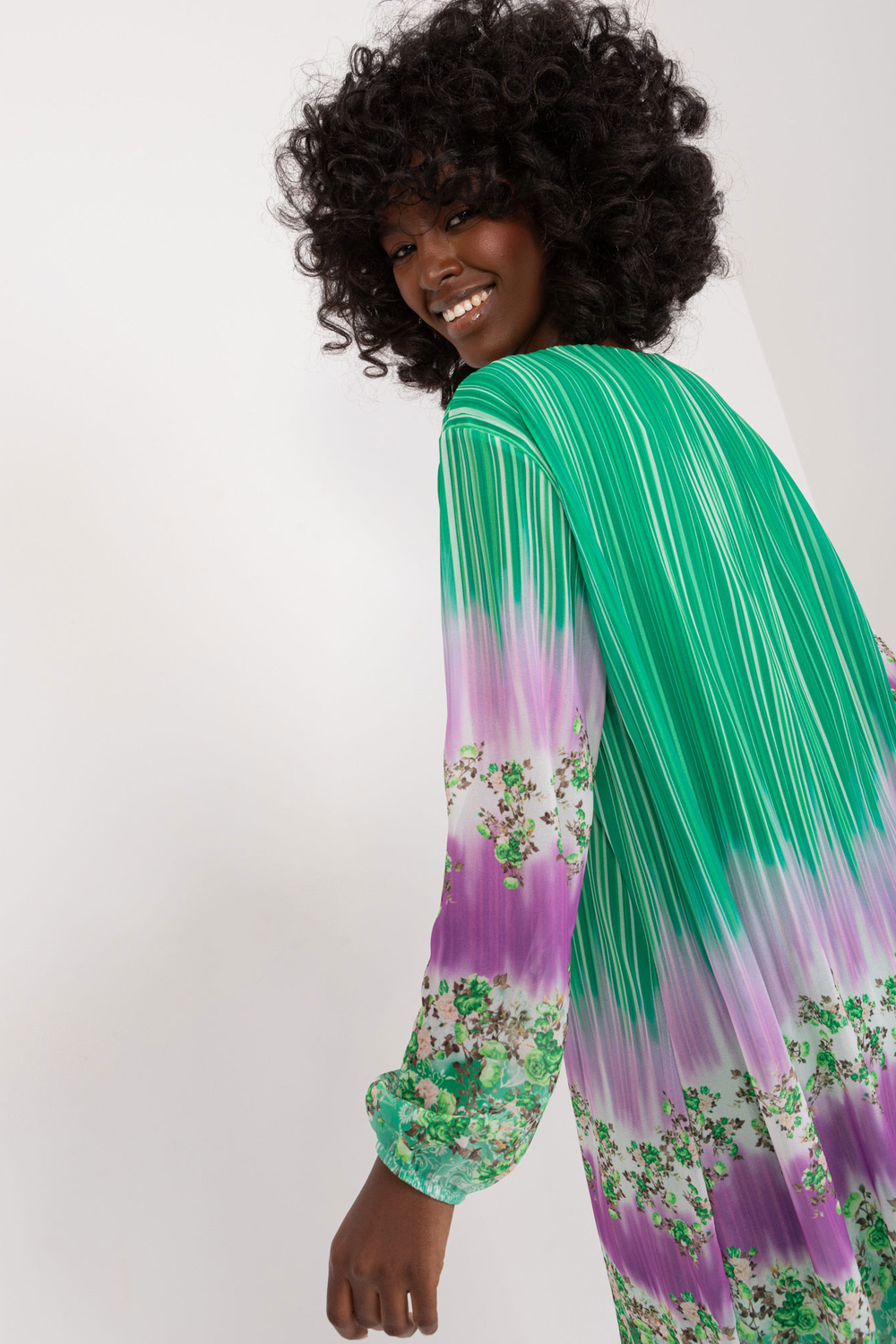 Modelis dėvi vieno dydžio dydį. Modelio išmatavimai: ūgis 168 cm, krūtinė 82 cm, juosmuo 62 cm, klubai 93 cm
