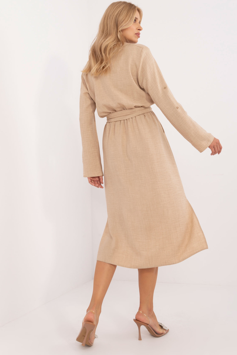Suknelės išmatavimai S/M dydžiu išmatuoti plokščiai: pažasties plotis - 54 cm, rankovių ilgis - 60 cm, bendras ilgis - 125 cm.