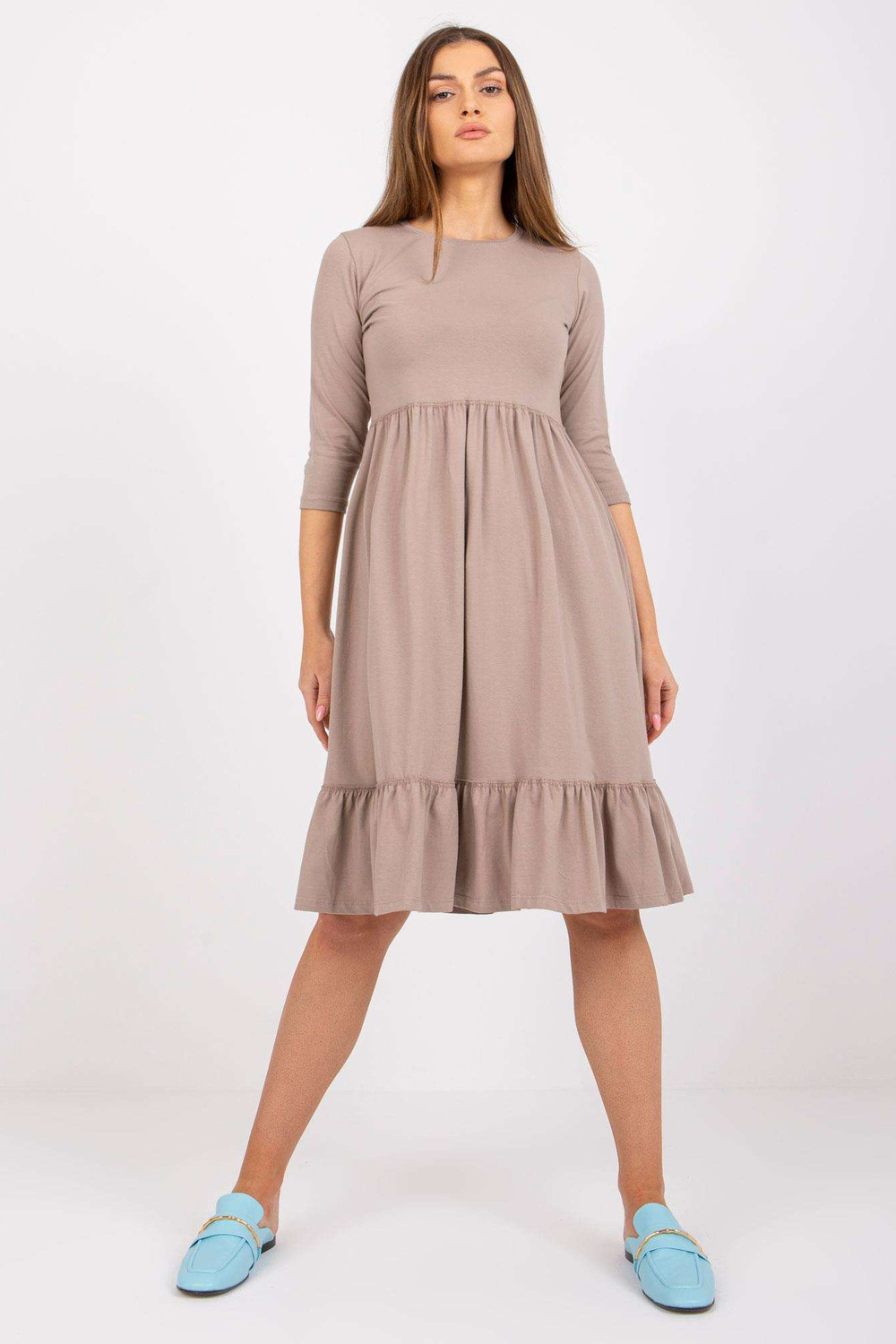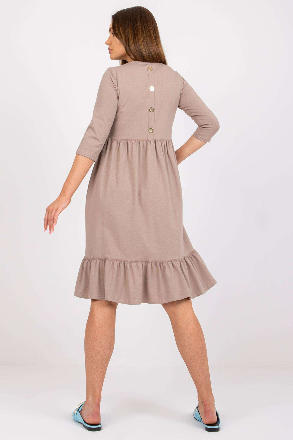 Suknelės matmenys S dydžio, matuojamas plokščias: pažasties plotis - 43 cm, bendras ilgis - 94 cm, rankovių ilgis - 36 cm.
