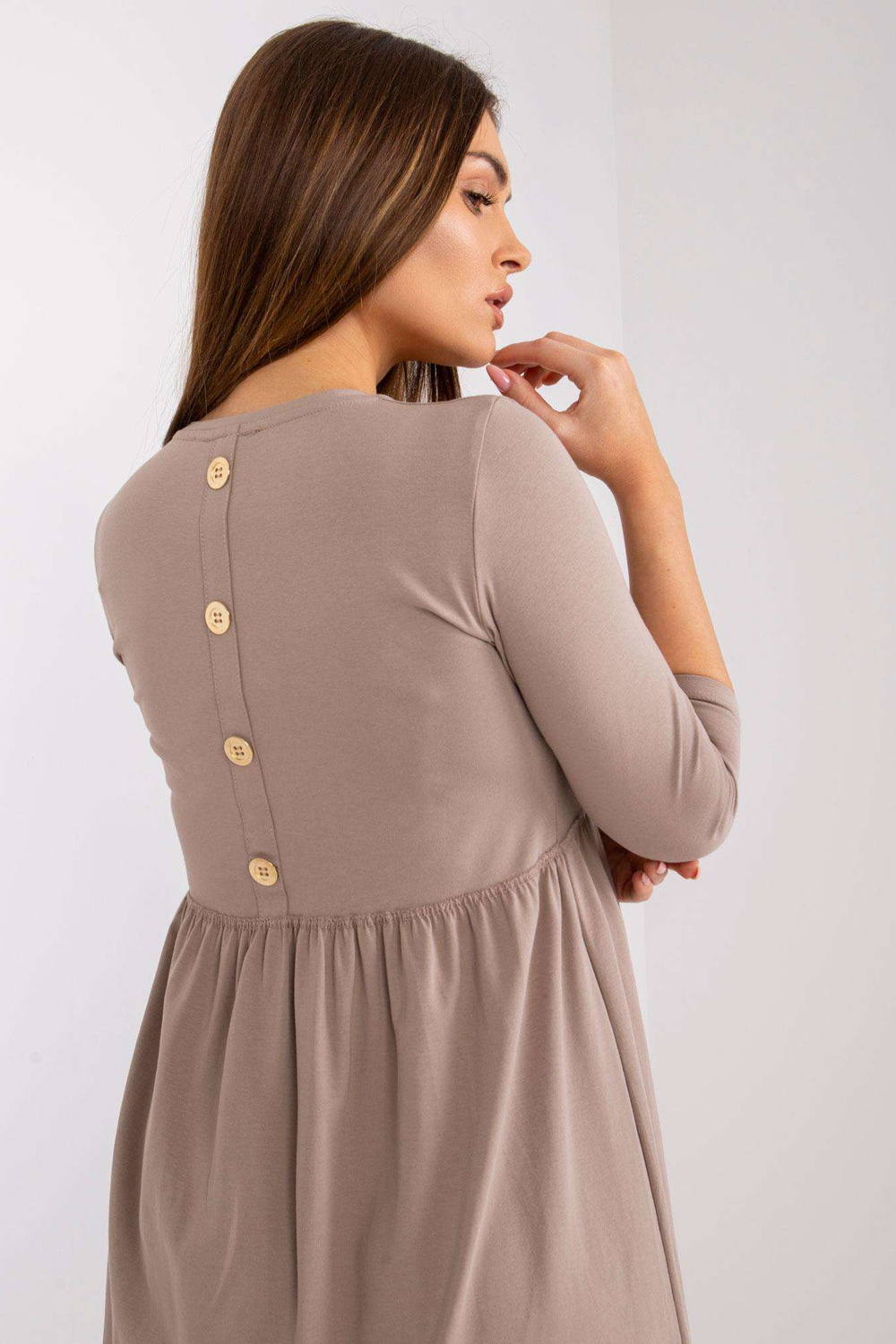 Modelis dėvi S dydį. Modelio išmatavimai: ūgis 170 cm, krūtinė 93 cm, juosmuo 66 cm, klubai 93 cm.