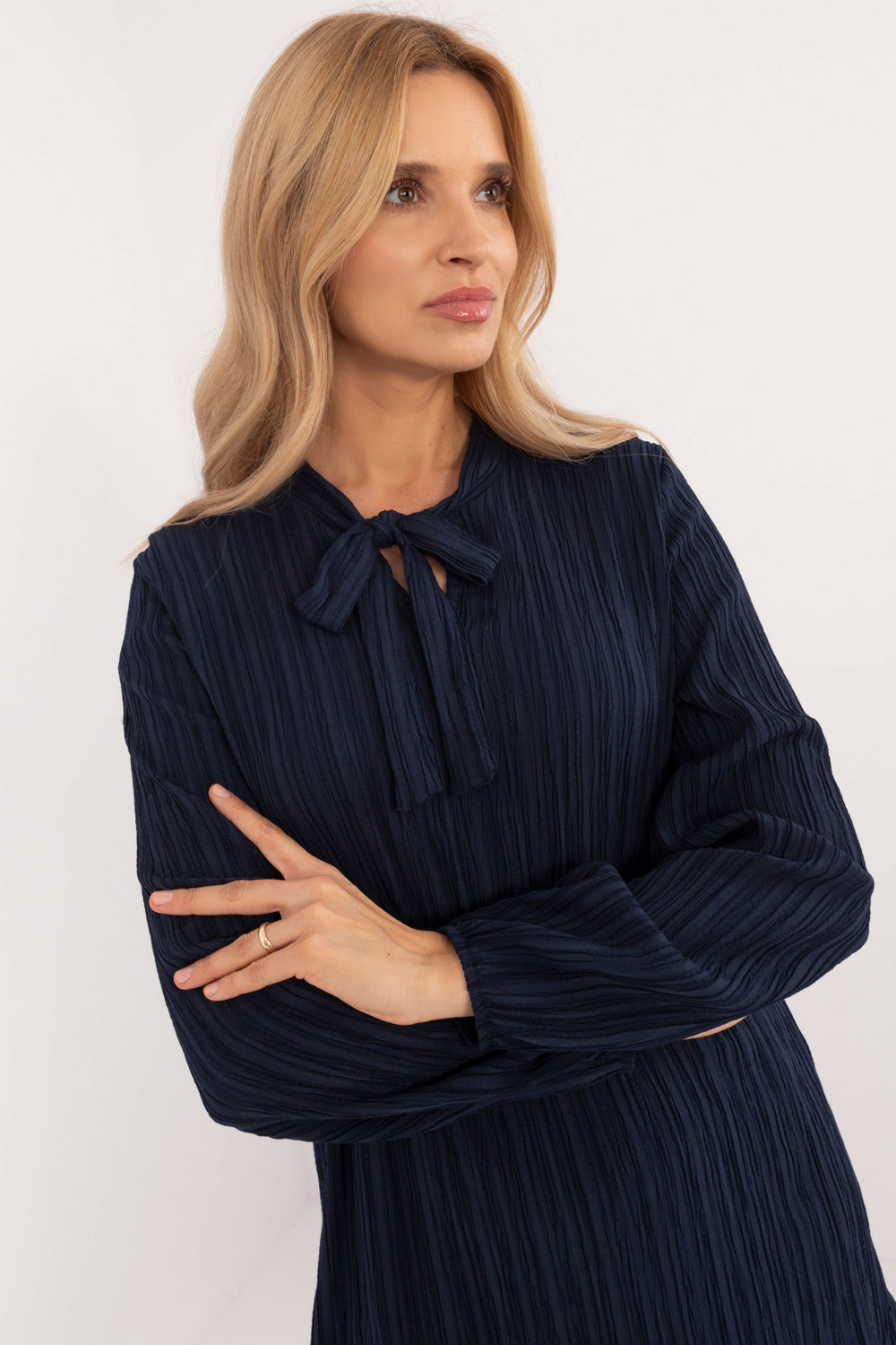 Suknelės matmenys vieno dydžio matuojant plokščią: pažasties plotis - 47 cm, rankovių ilgis - 61 cm, bendras ilgis - 99 cm.
