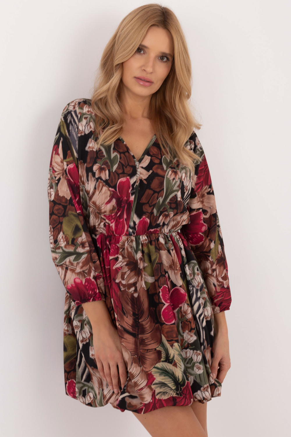 Suknelės matmenys vieno dydžio, matuojamas plokščias: plotis po pažastimis - 54 cm, bendras ilgis - 84 cm, rankovių ilgis - 52 cm.