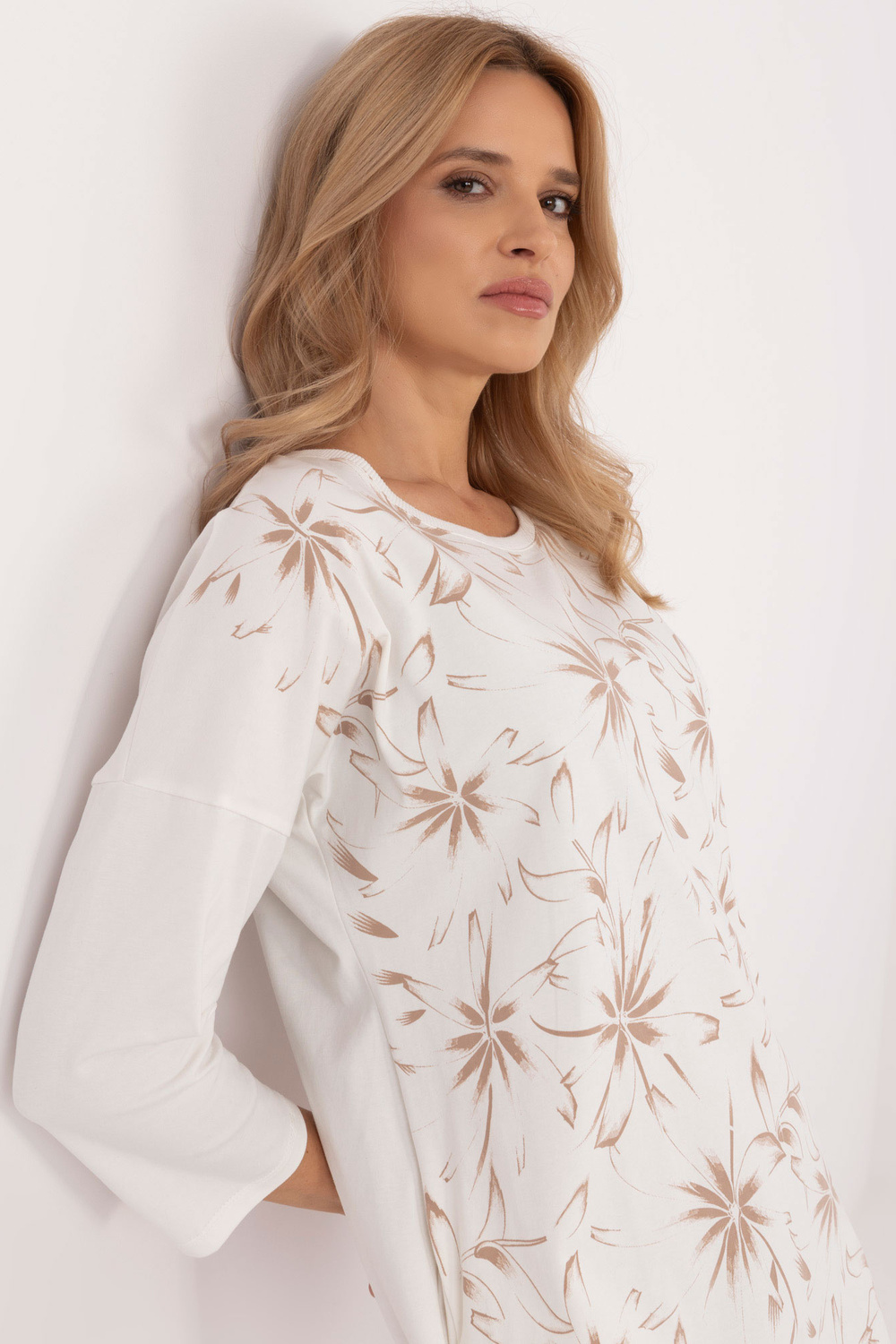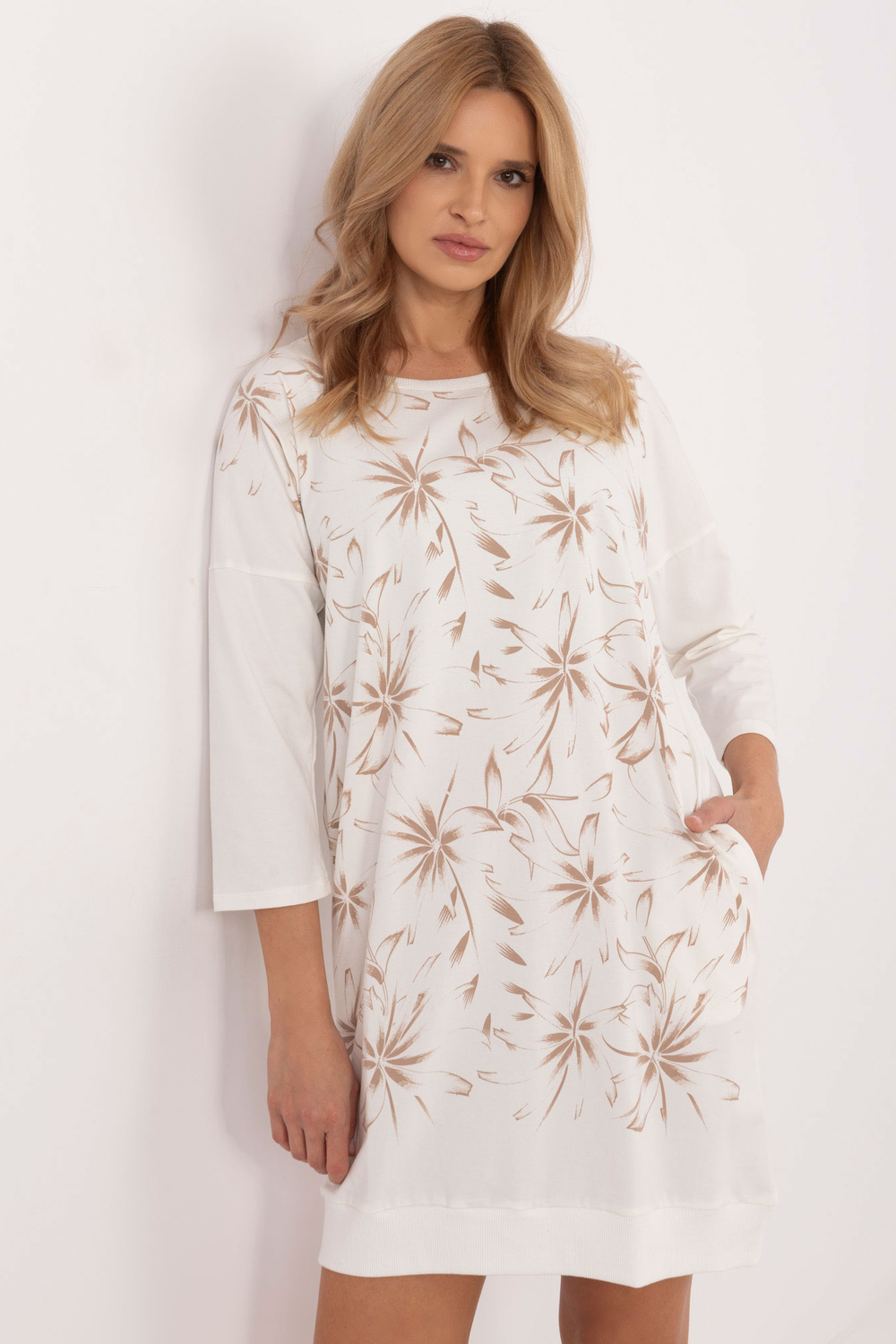 Suknelės matmenys vieno dydžio, matuojamas plokščias: plotis po pažastimis - 58 cm, rankovės ilgis - 30 cm (nuo siūlės), bendras ilgis - 87 cm.