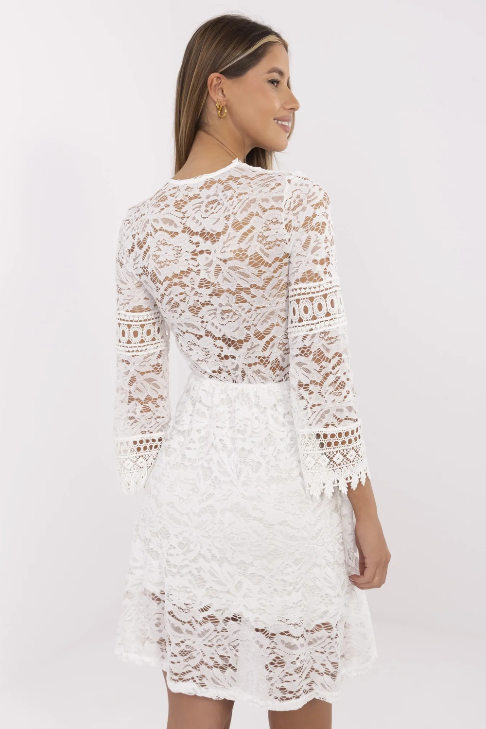 Suknelės išmatavimai vieno dydžio matuojant plokščią: plotis po pažastimis - 42 cm, juosmens plotis - 34 cm, rankovės ilgis - 50 cm, klubų plotis 9 cm, bendras ilgis - 6 cm.
