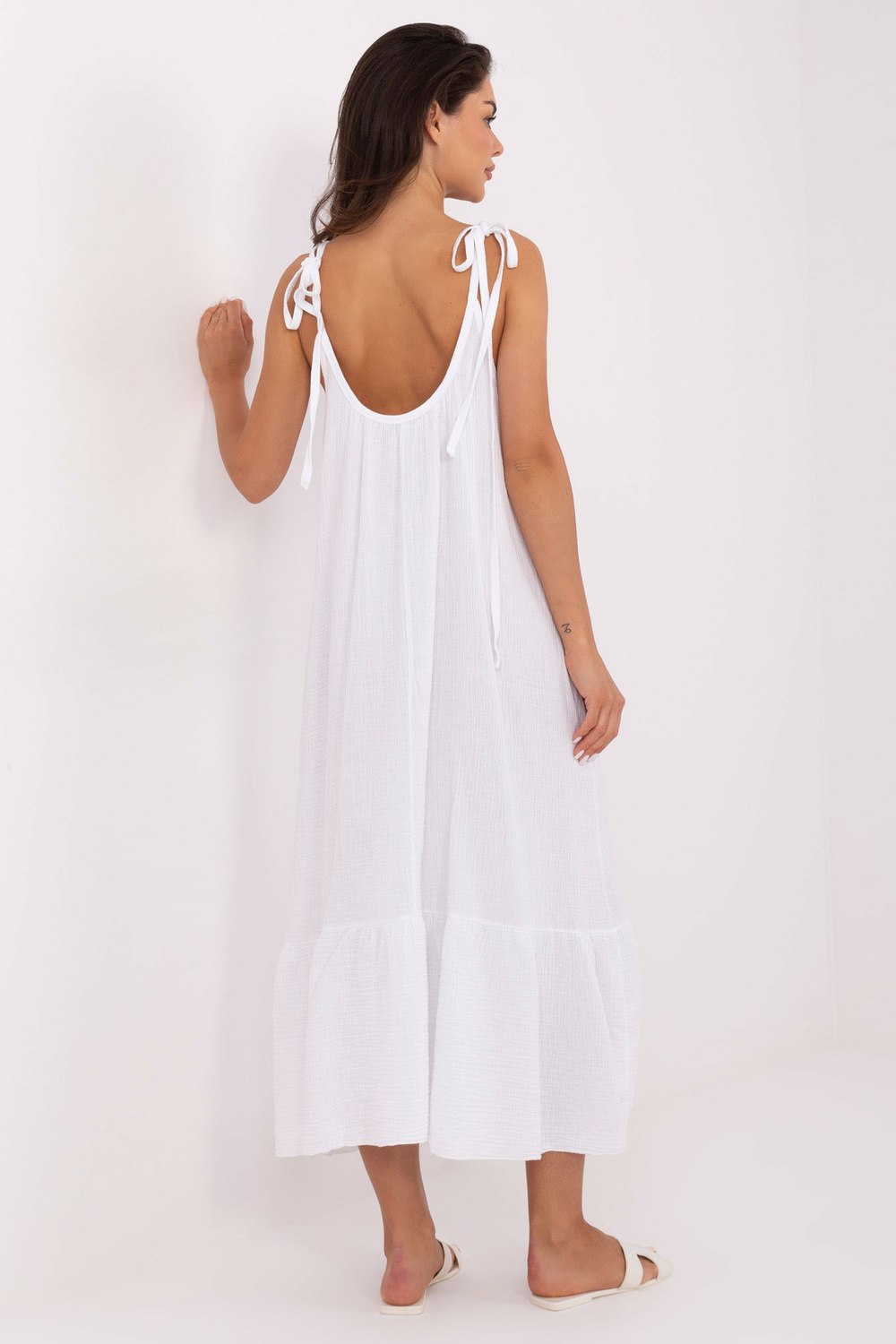 Suknelės matmenys universaliame dydyje: plotis po pažastimis - 59 cm, plotis liemens srityje - 63 cm, plotis klubų srityje - 66 cm, bendras ilgis - 119 cm (be petnešėlių), petnešėlių ilgis - 82 cm.