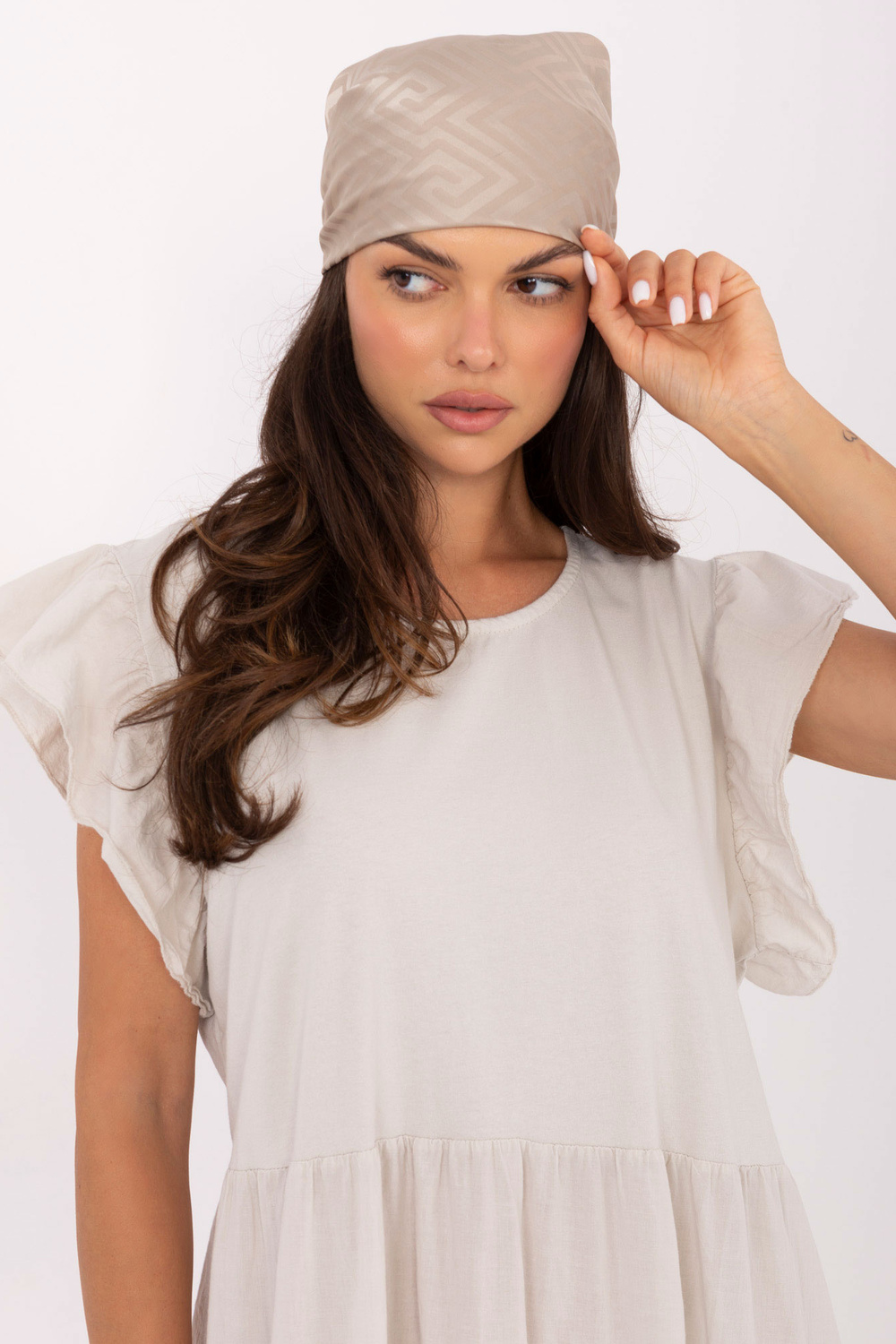 Modelis dėvi vieno dydžio rūbą. Modelio matmenys: ūgis 173 cm, krūtinė 89 cm, liemuo 65 cm, klubai 91 cm.