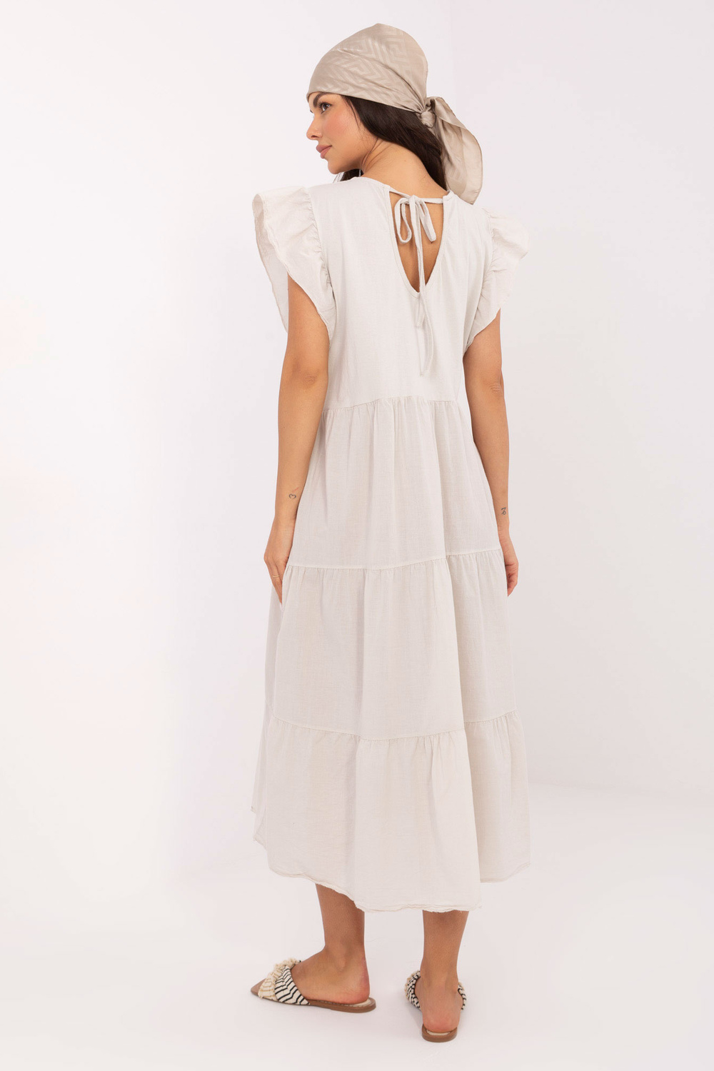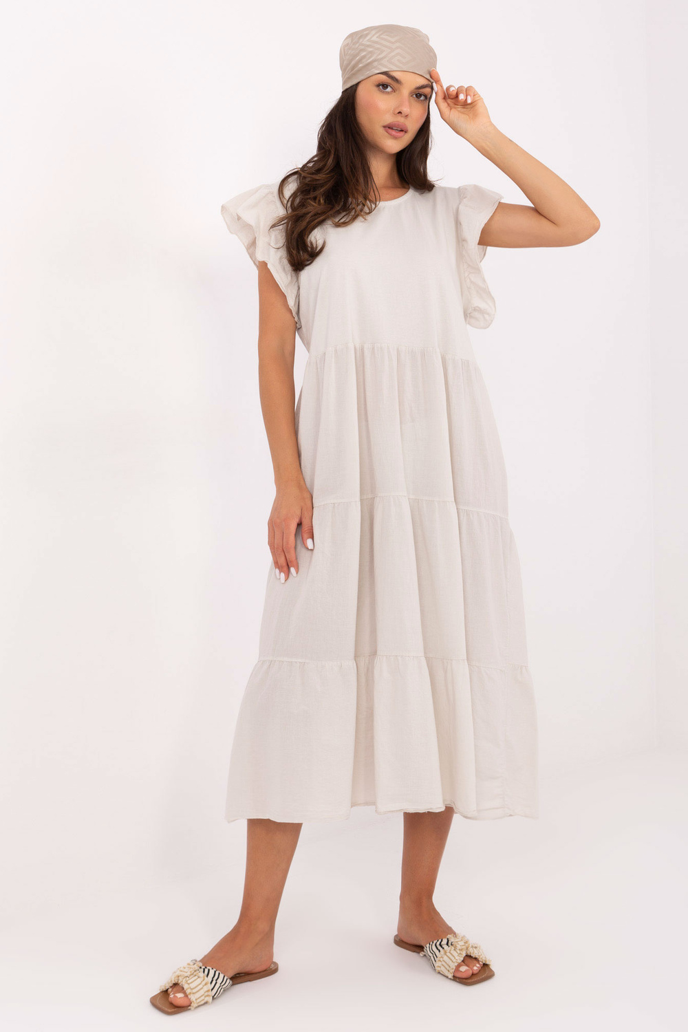 Suknelės matmenys vieno dydžio: plotis po pažastimis - 55 cm, plotis liemens srityje - 56 cm, plotis klubų srityje - 68 cm, rankovės ilgis - 16 cm, bendras ilgis - 119 cm.