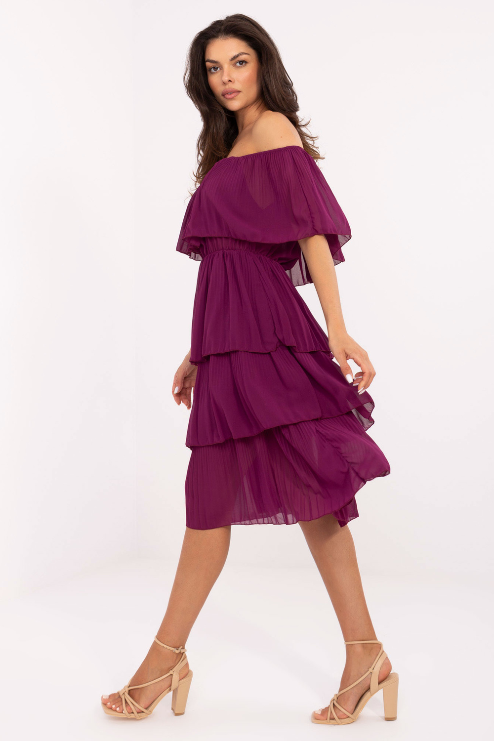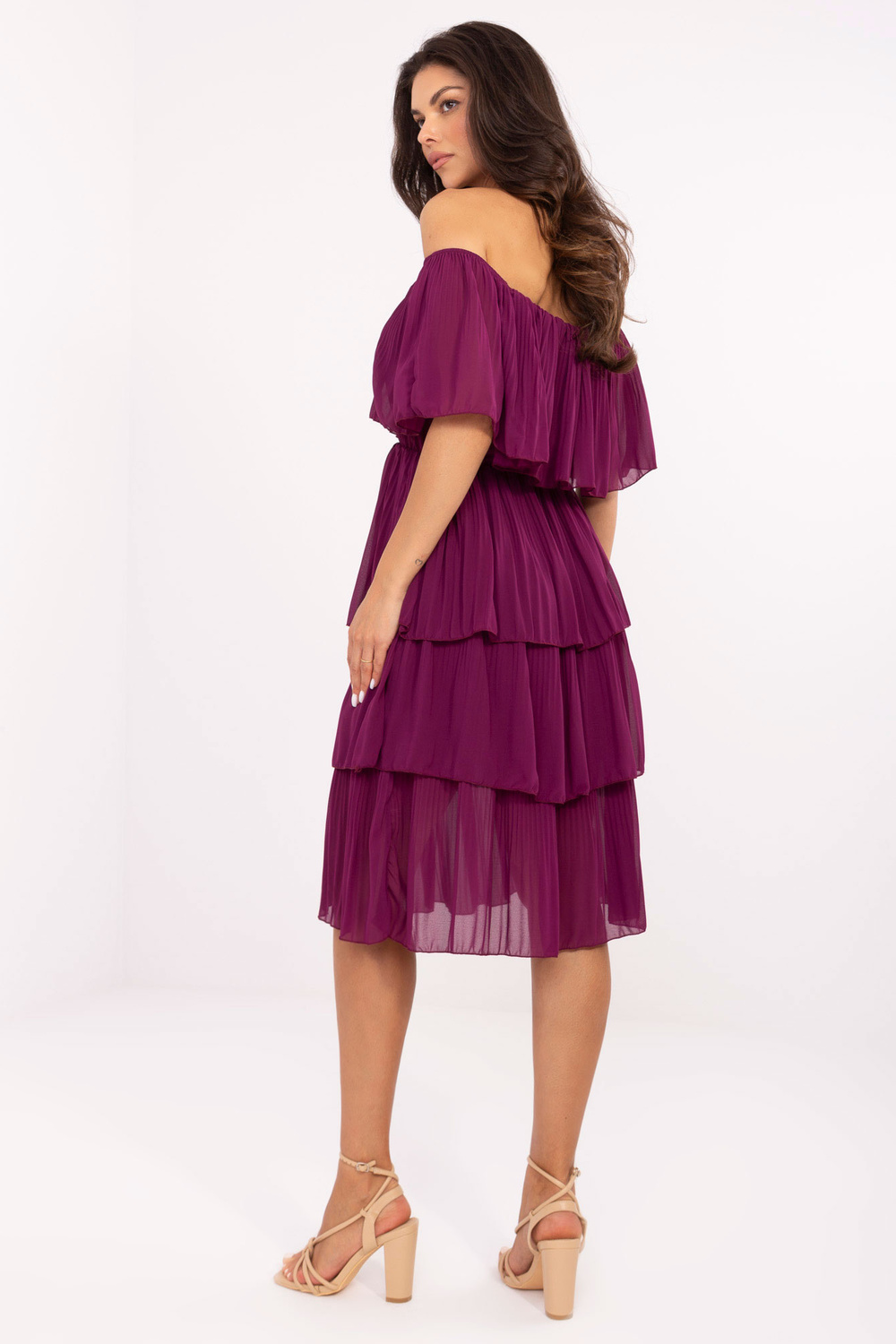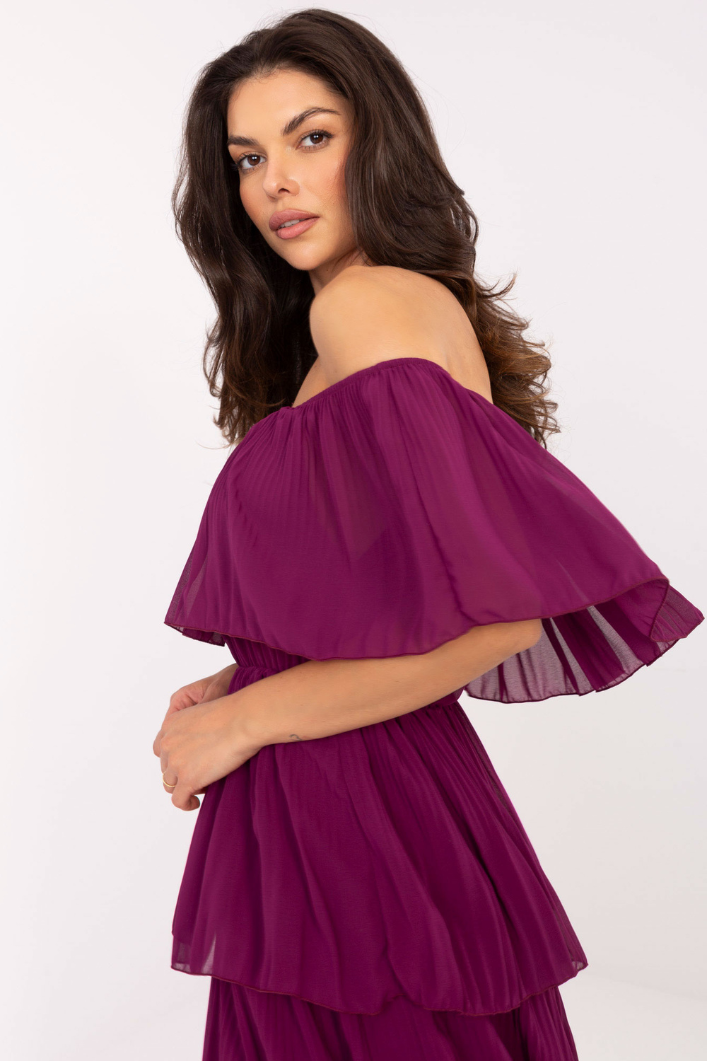 Modelis dėvi one size dydį. Modelio matmenys: ūgis 173 cm, krūtinė 89 cm, liemuo 65 cm, klubai 91 cm.
