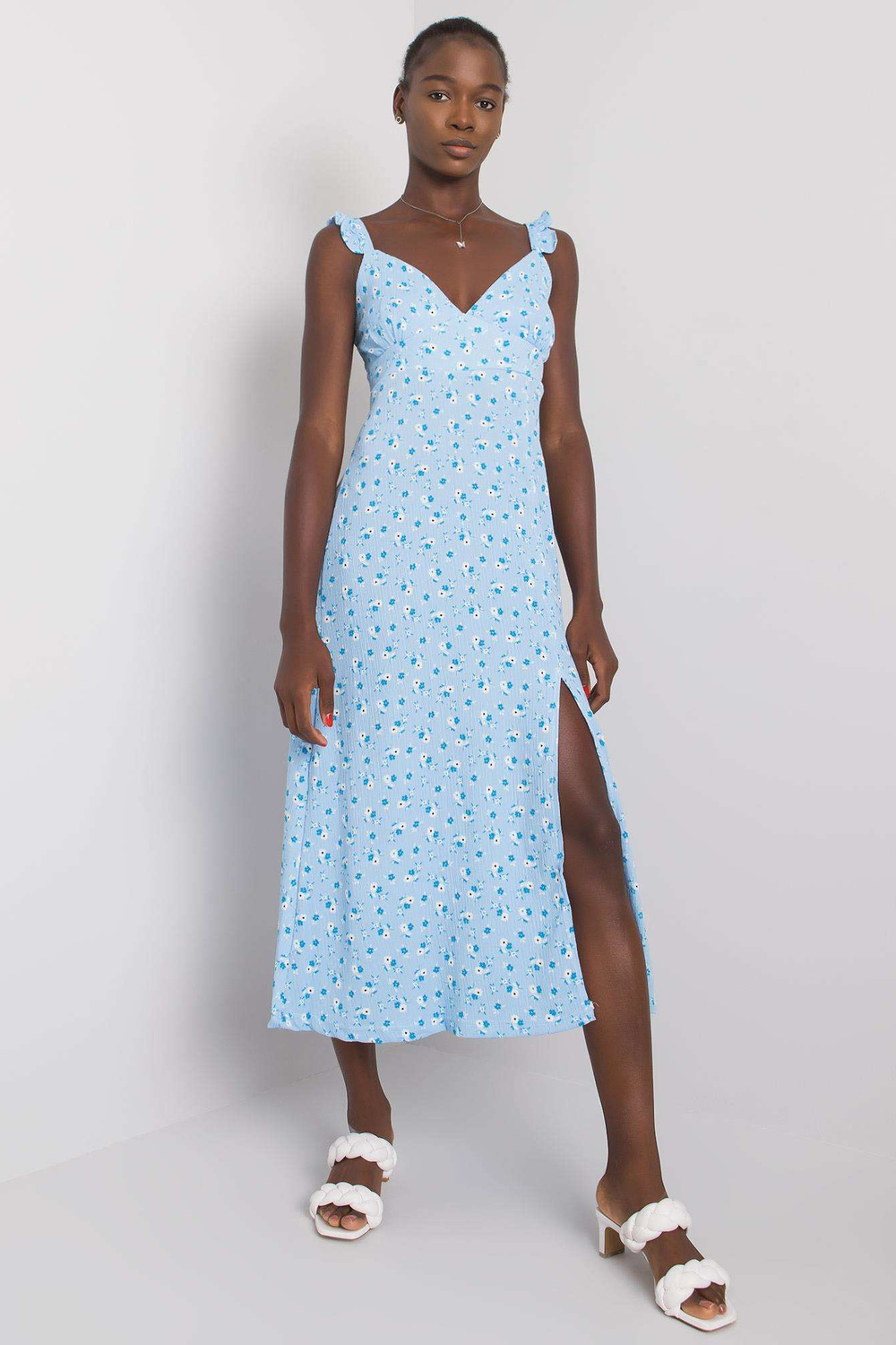RUE PARIS Šviesiai mėlyna suknelė su printu.