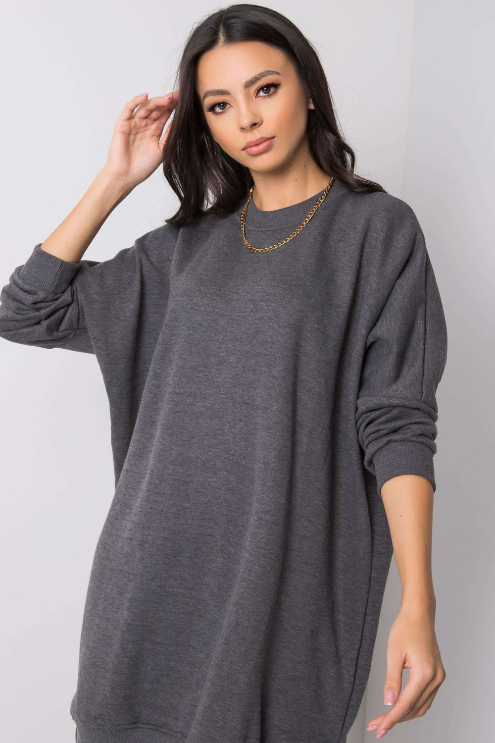 Tamsiai pilka marginta laisvo stiliaus sportinė suknelė oversize.