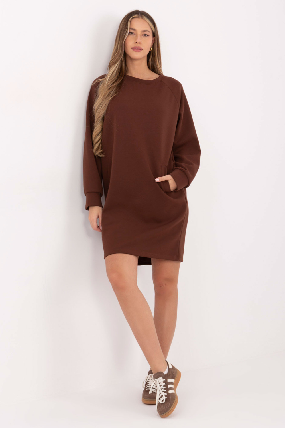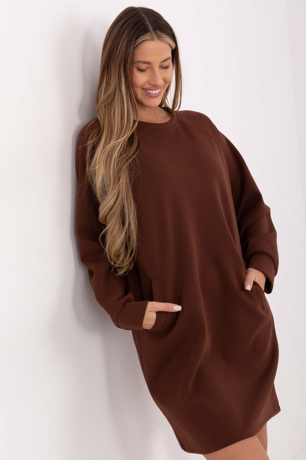 Vieno dydžio suknelės matmenys matuojant gulsčiai: plotis pažastyse – 59 cm, plotis klubuose – 57 cm, rankovės ilgis – 70 cm (nuo siūlės), bendras ilgis – 93 cm.
