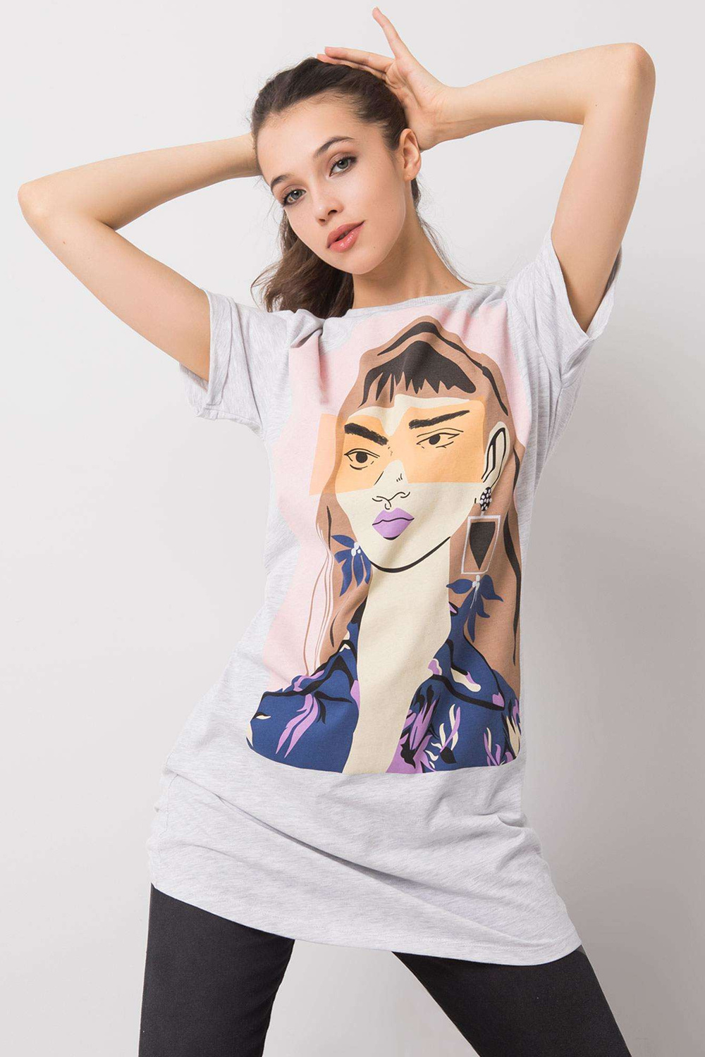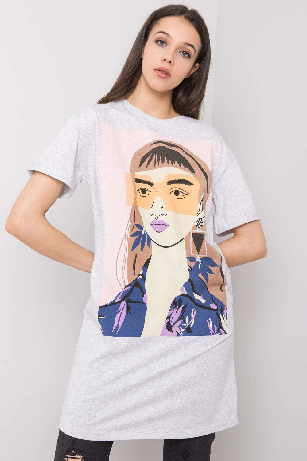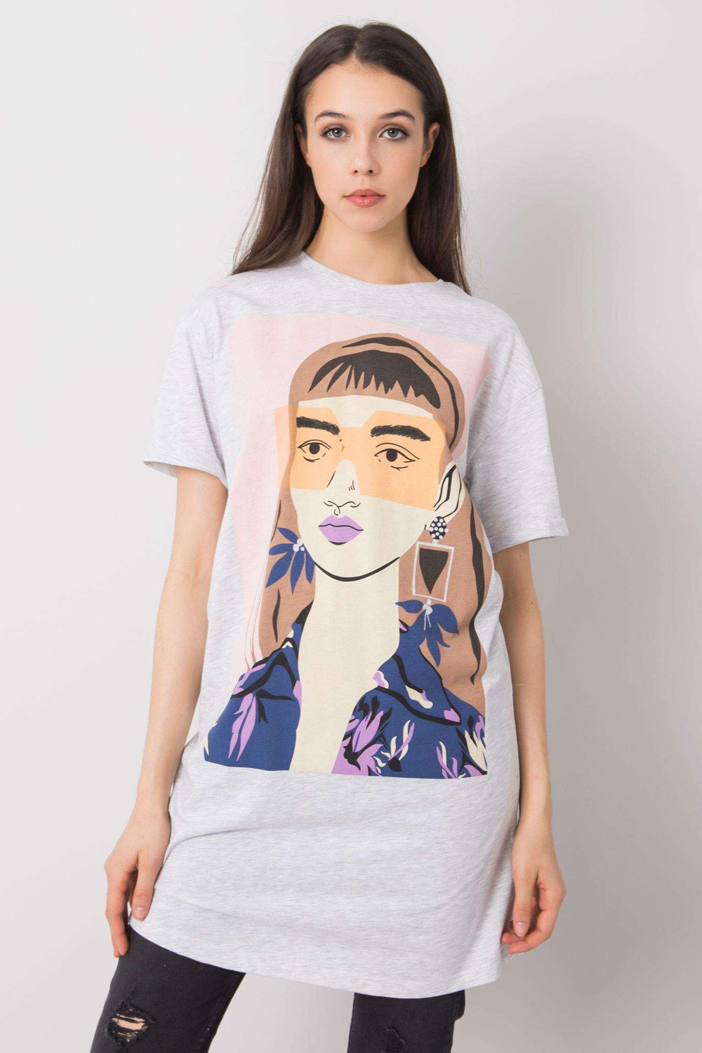 Šviesiai pilka tunika su Circe SUBLEVEL spaudiniu .