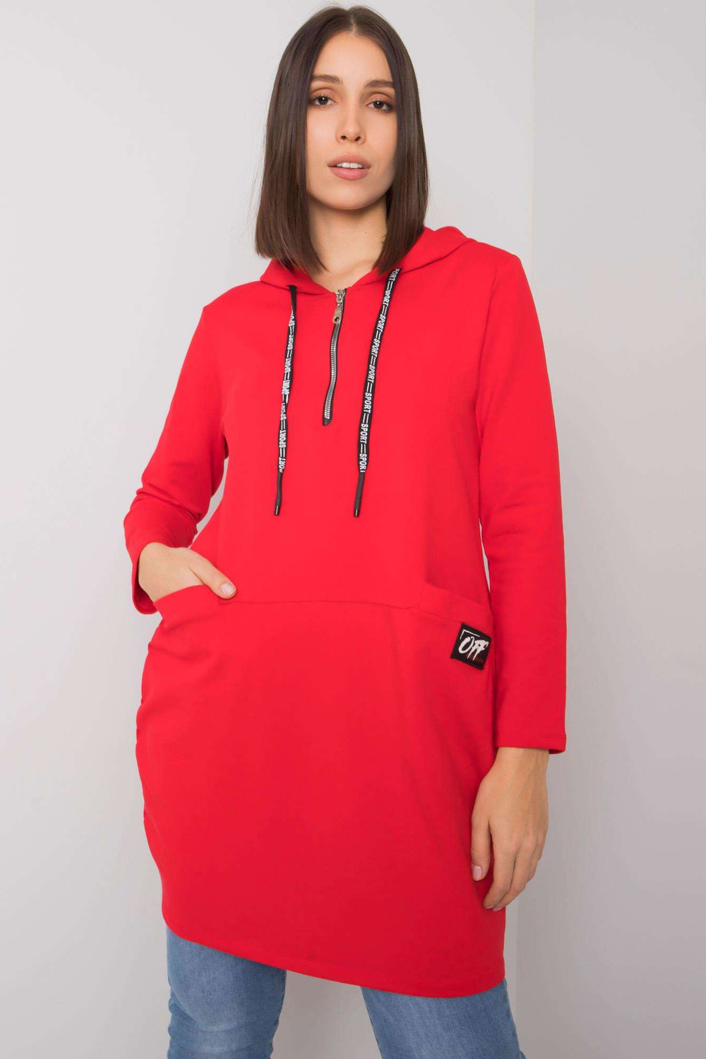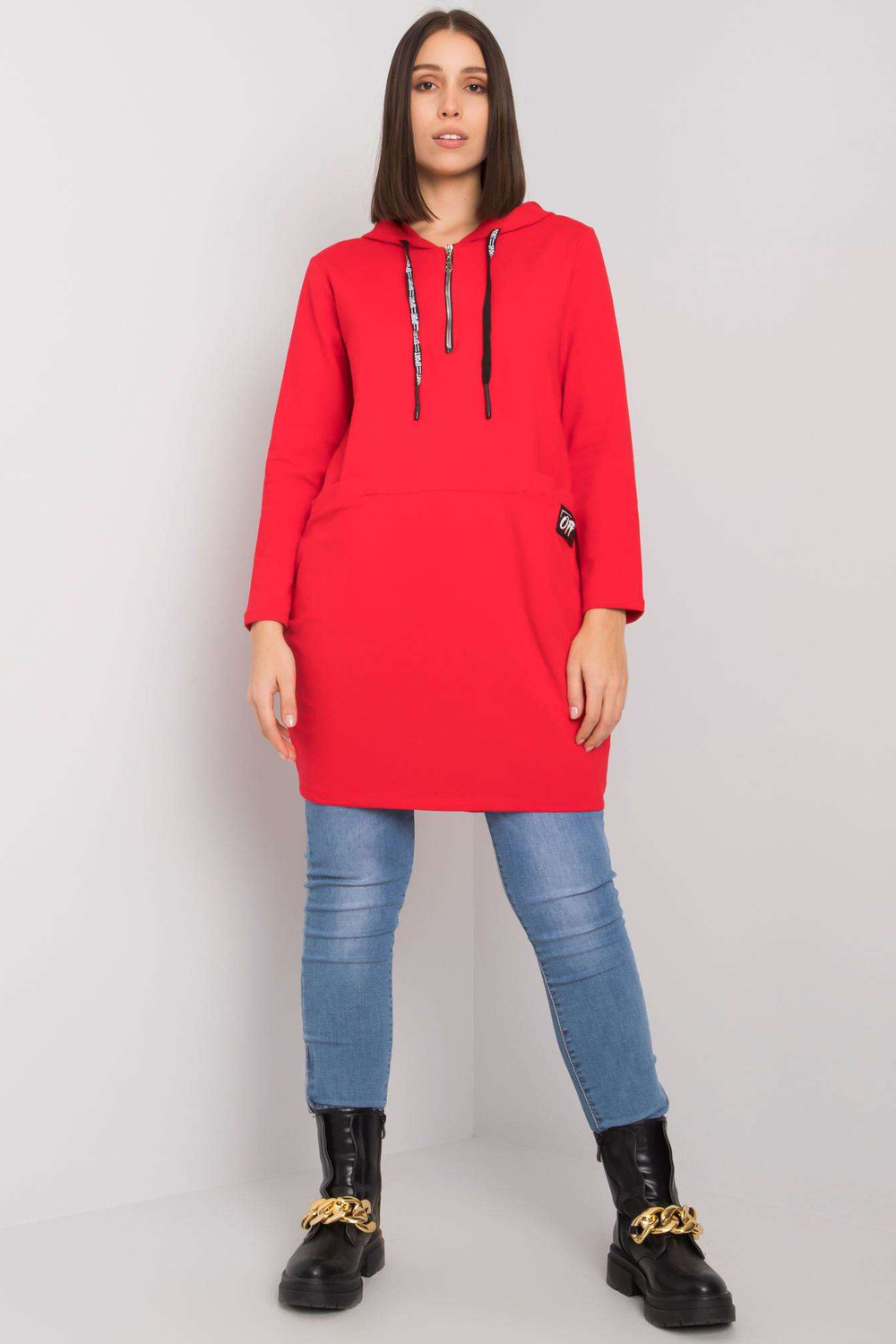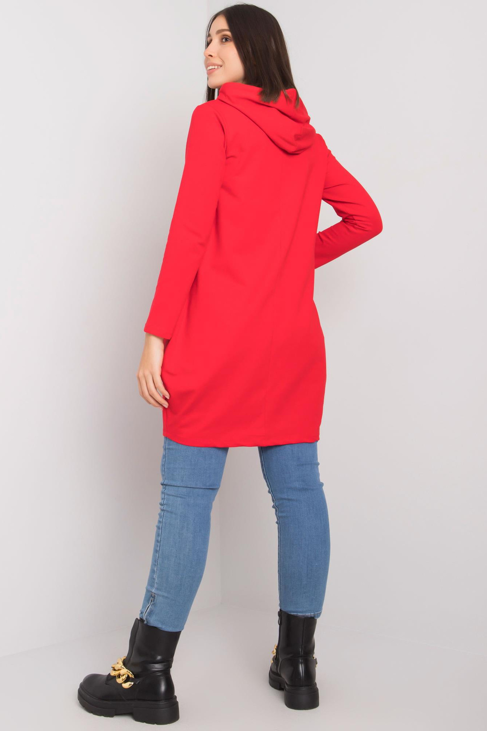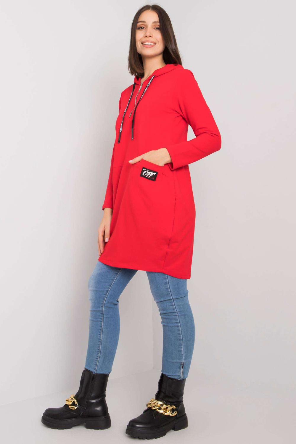 Plaus dydžio raudona medvilninė tunika su „Kierra“ gobtuvu.