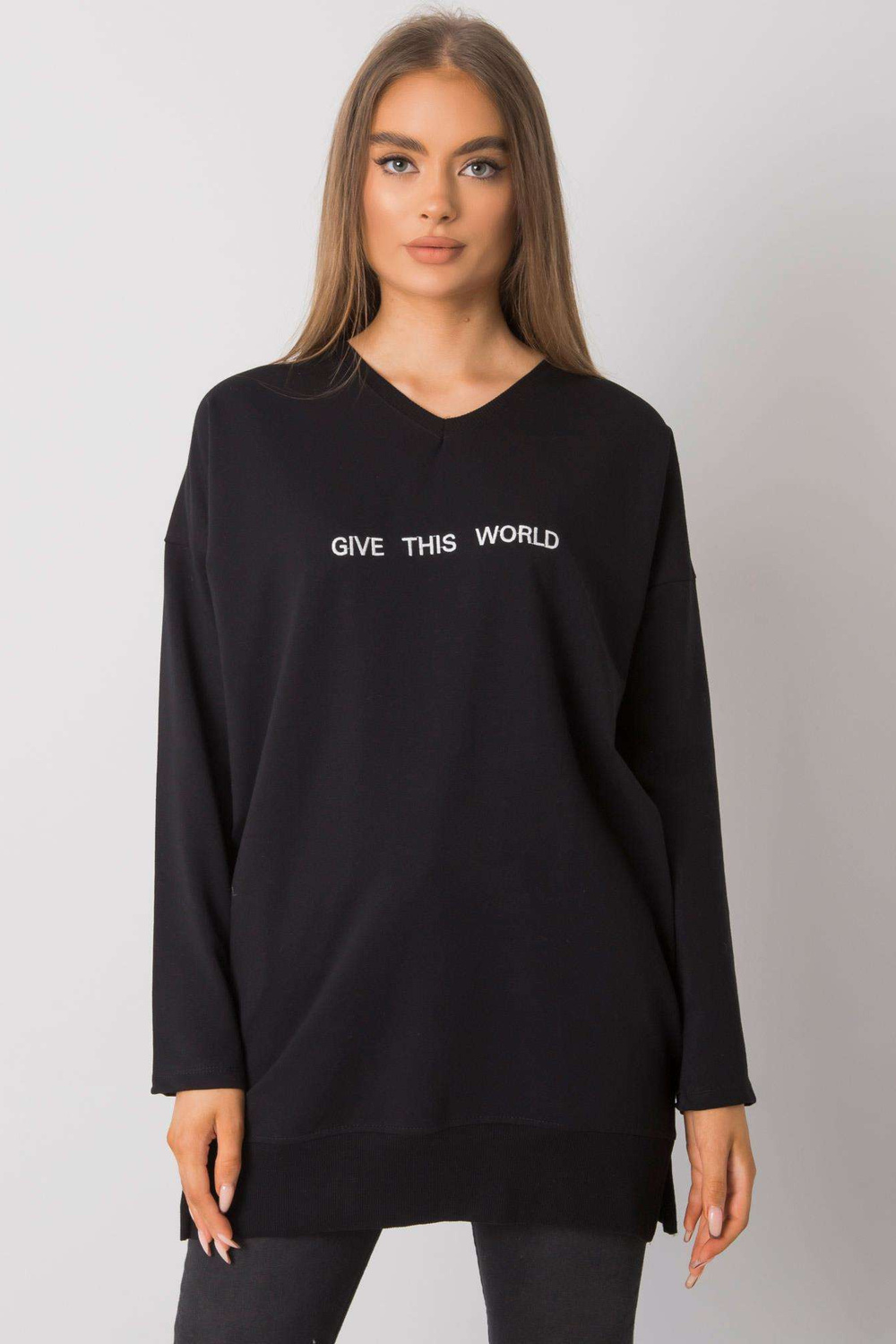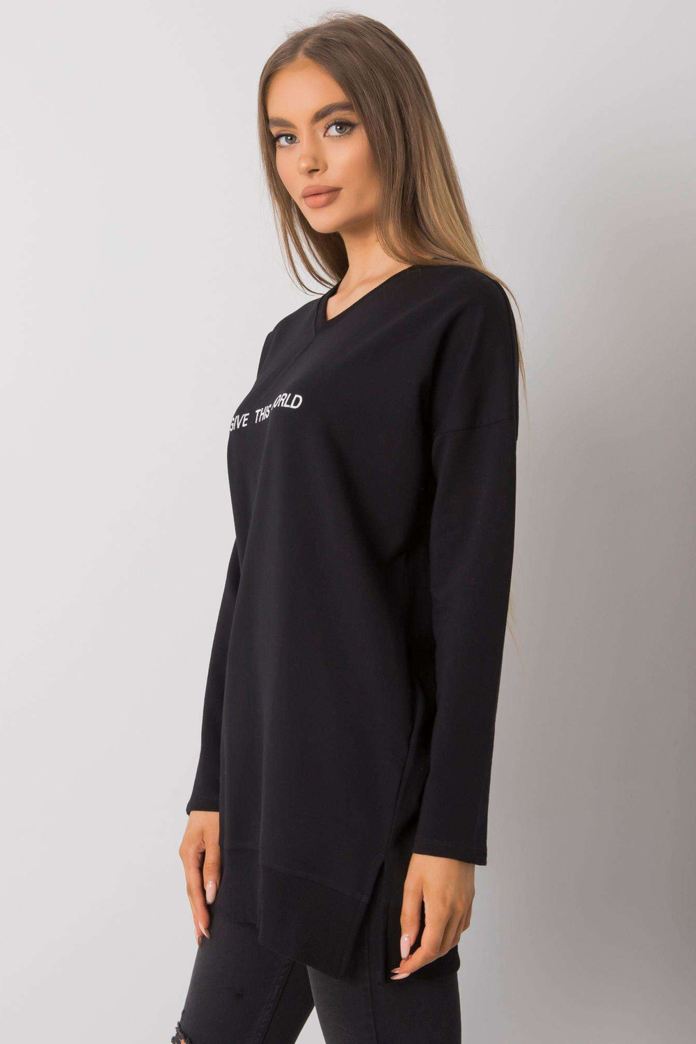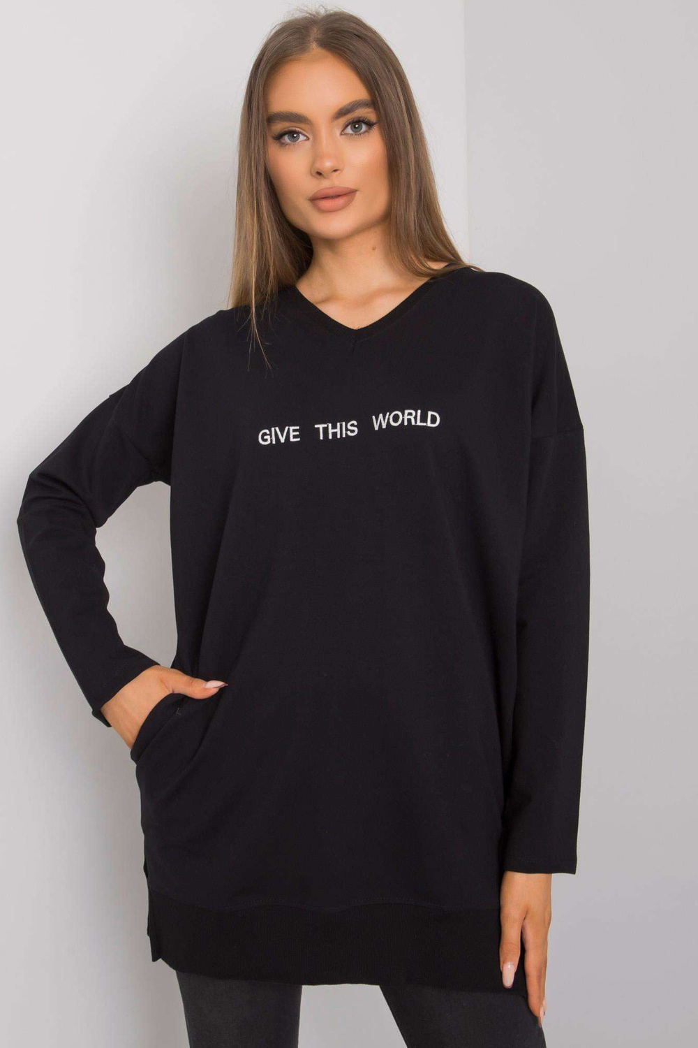 Juoda tunika su užrašu Halifax RUE PARIS.
