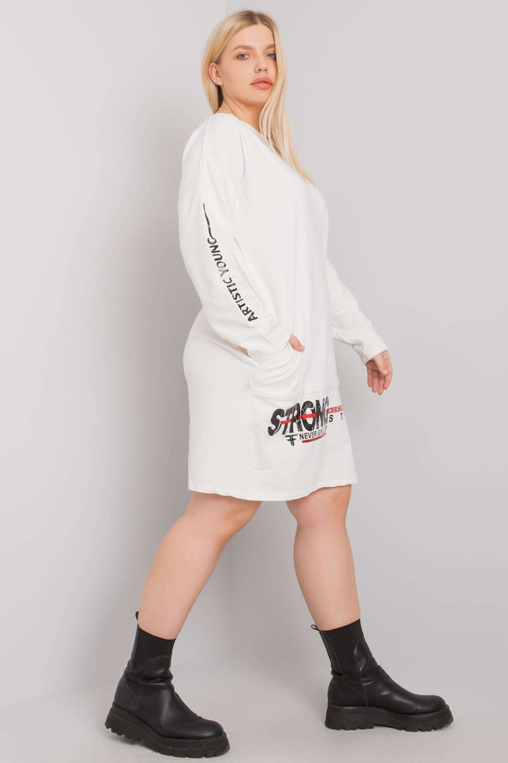 Modelis yra dėvi vieno dydžio dydį. Modelio matmenys: aukštis 172 cm, krūtinė 102 cm, juosmuo 77 cm, klubai 118 cm.
