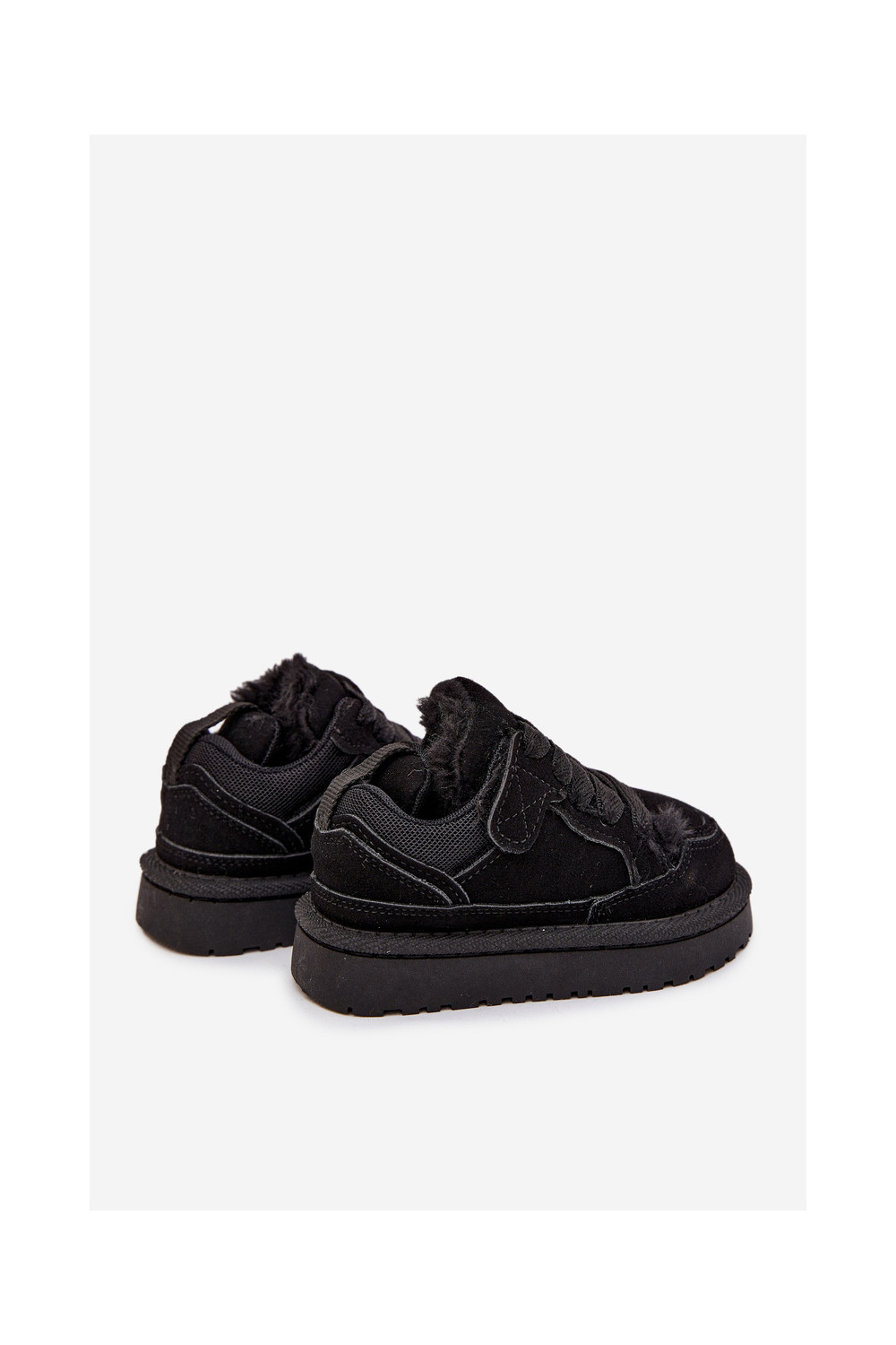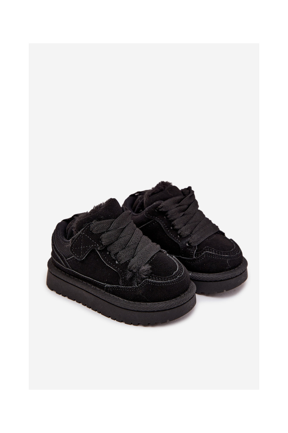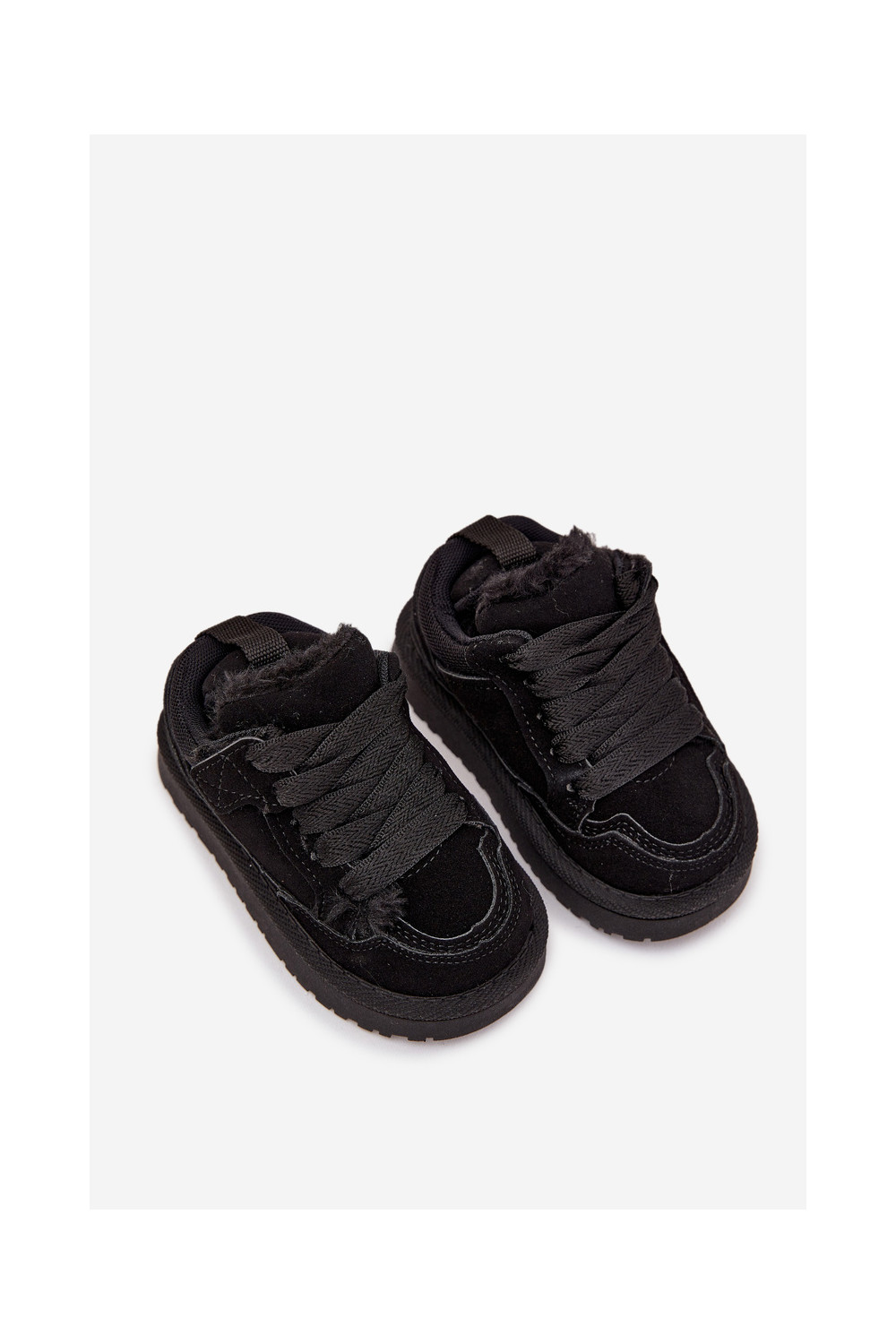 Juodos spalvos šilti vaikiški sportbačiai su kailiuku viduje Mireen