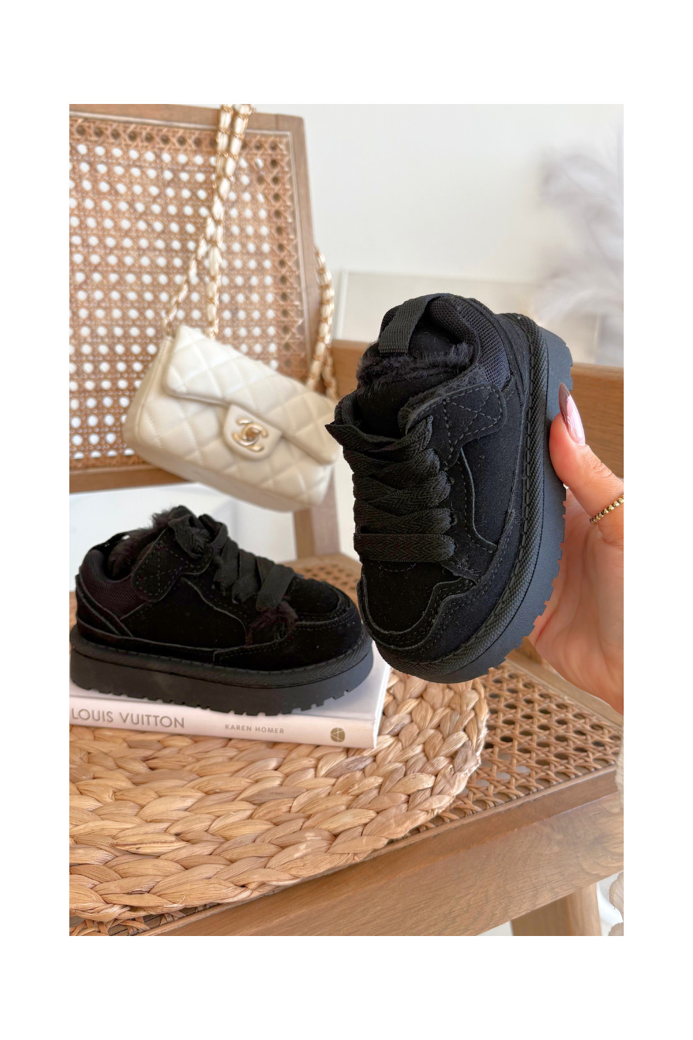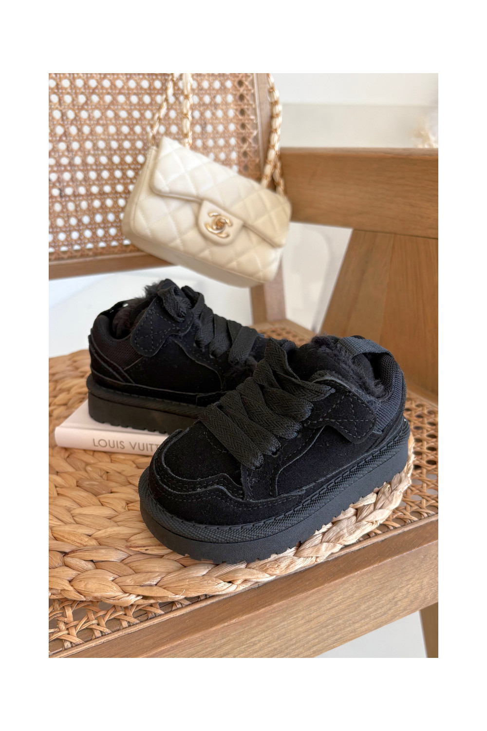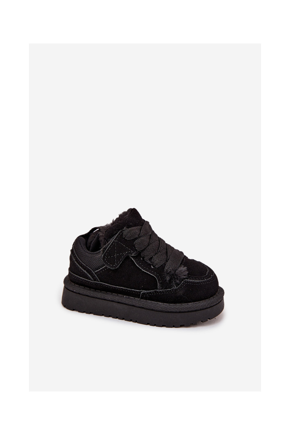 Juodos spalvos šilti vaikiški sportbačiai su kailiuku viduje Mireen