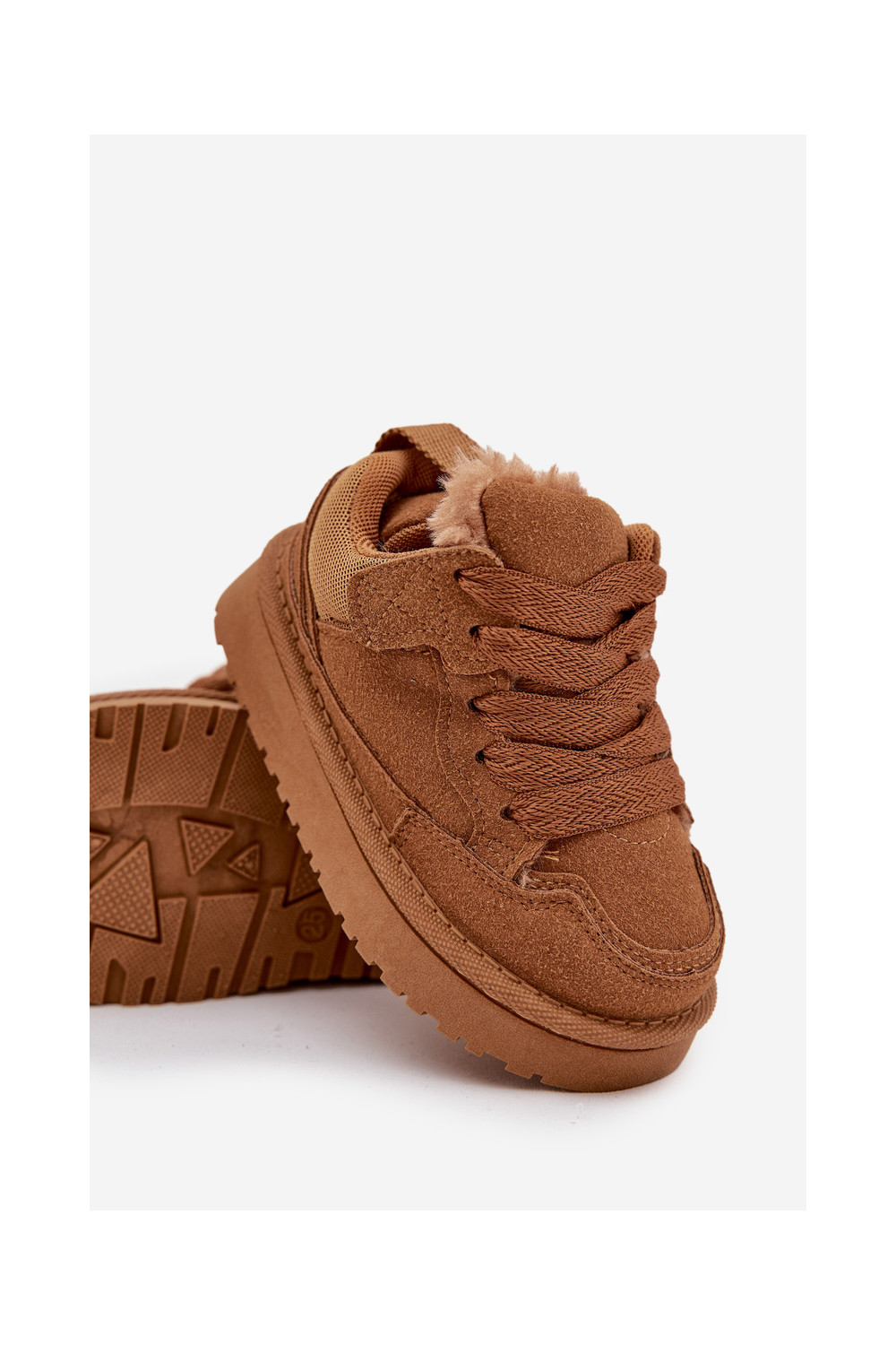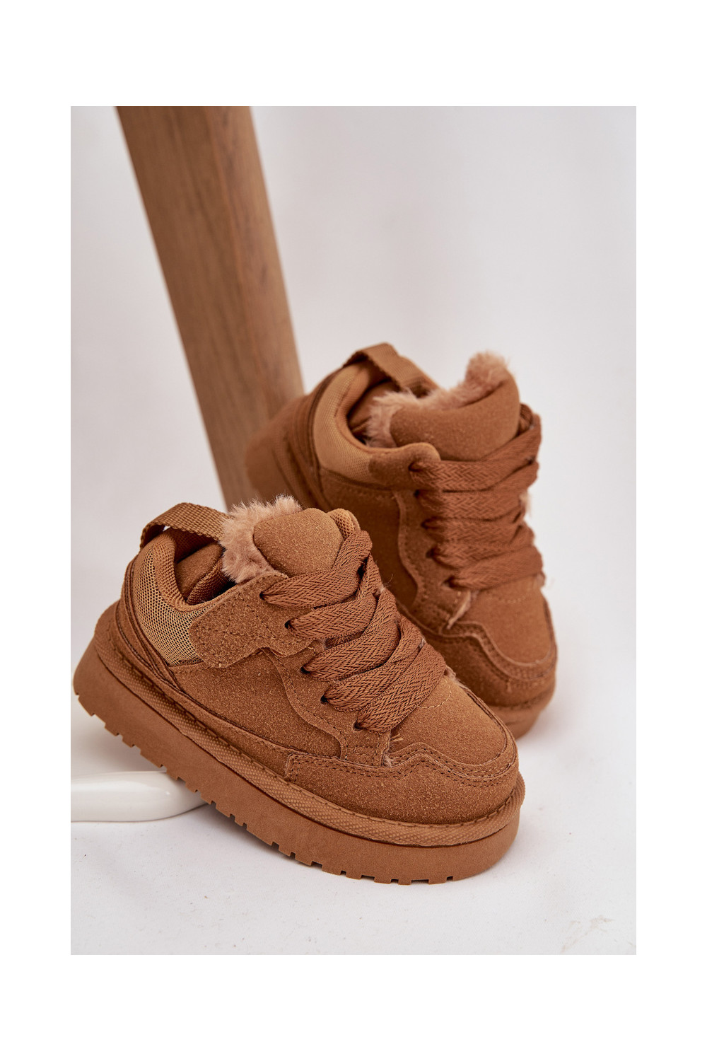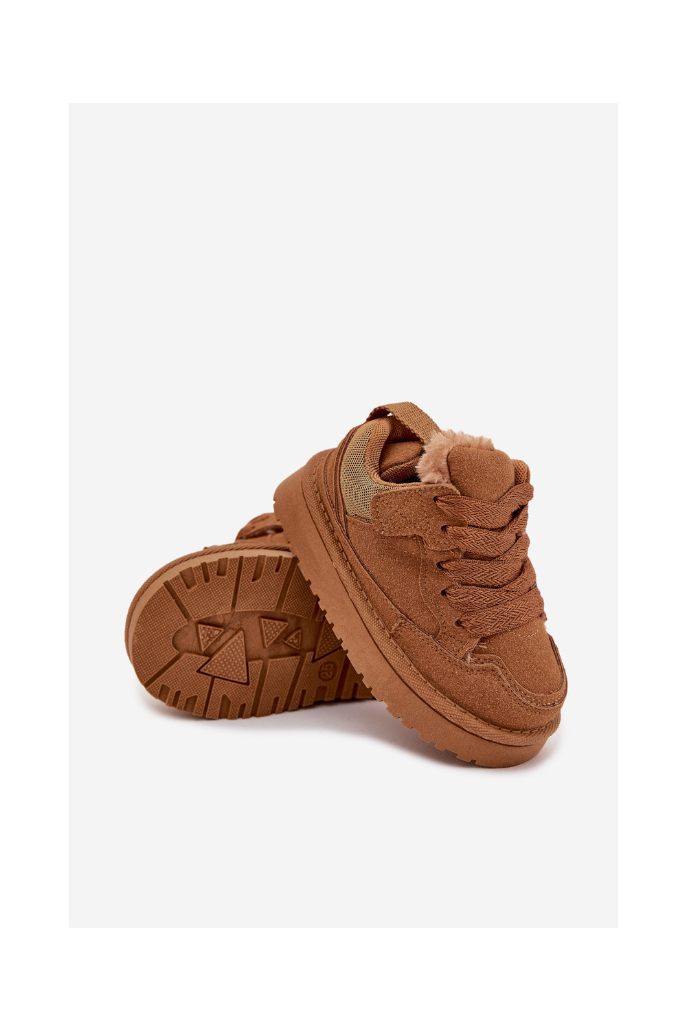 Rudos spalvos šilti vaikiški sportbačiai su kailiuku viduje Mireen