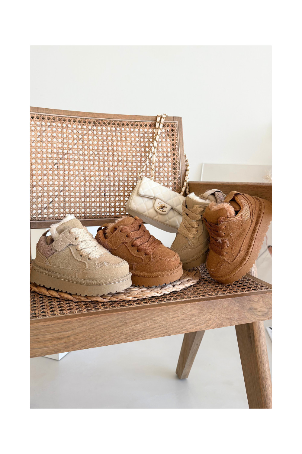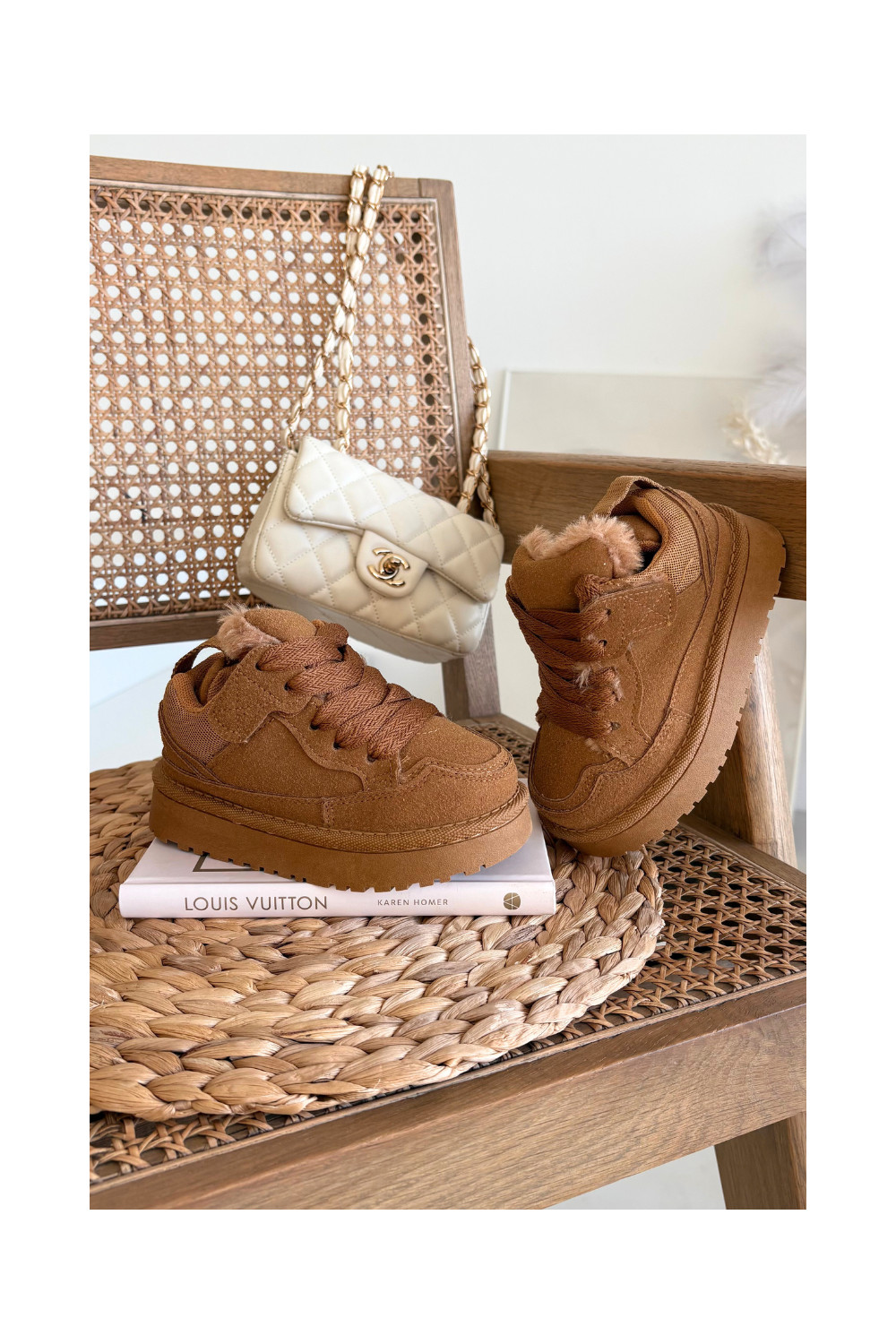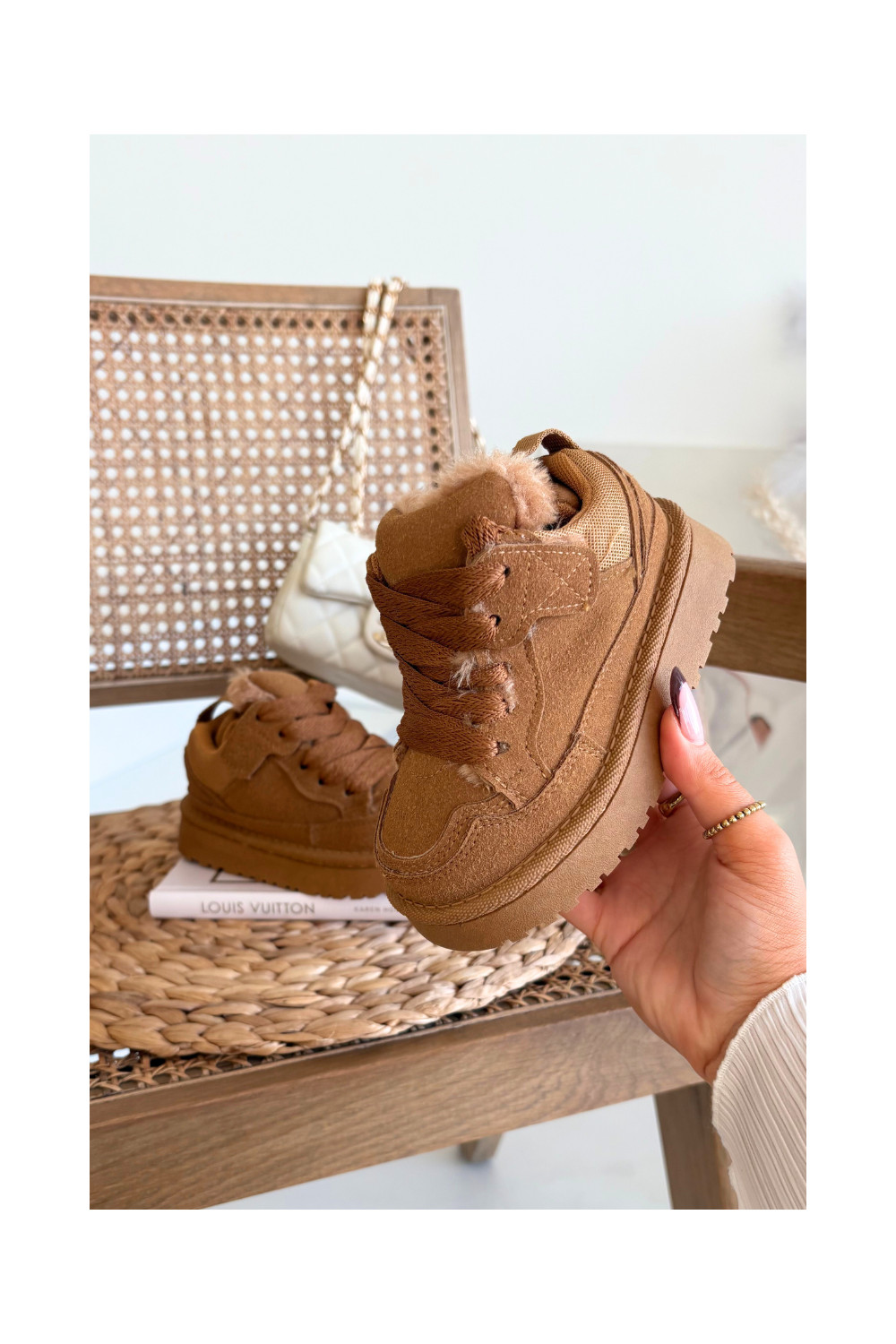 Rudos spalvos šilti vaikiški sportbačiai su kailiuku viduje Mireen
