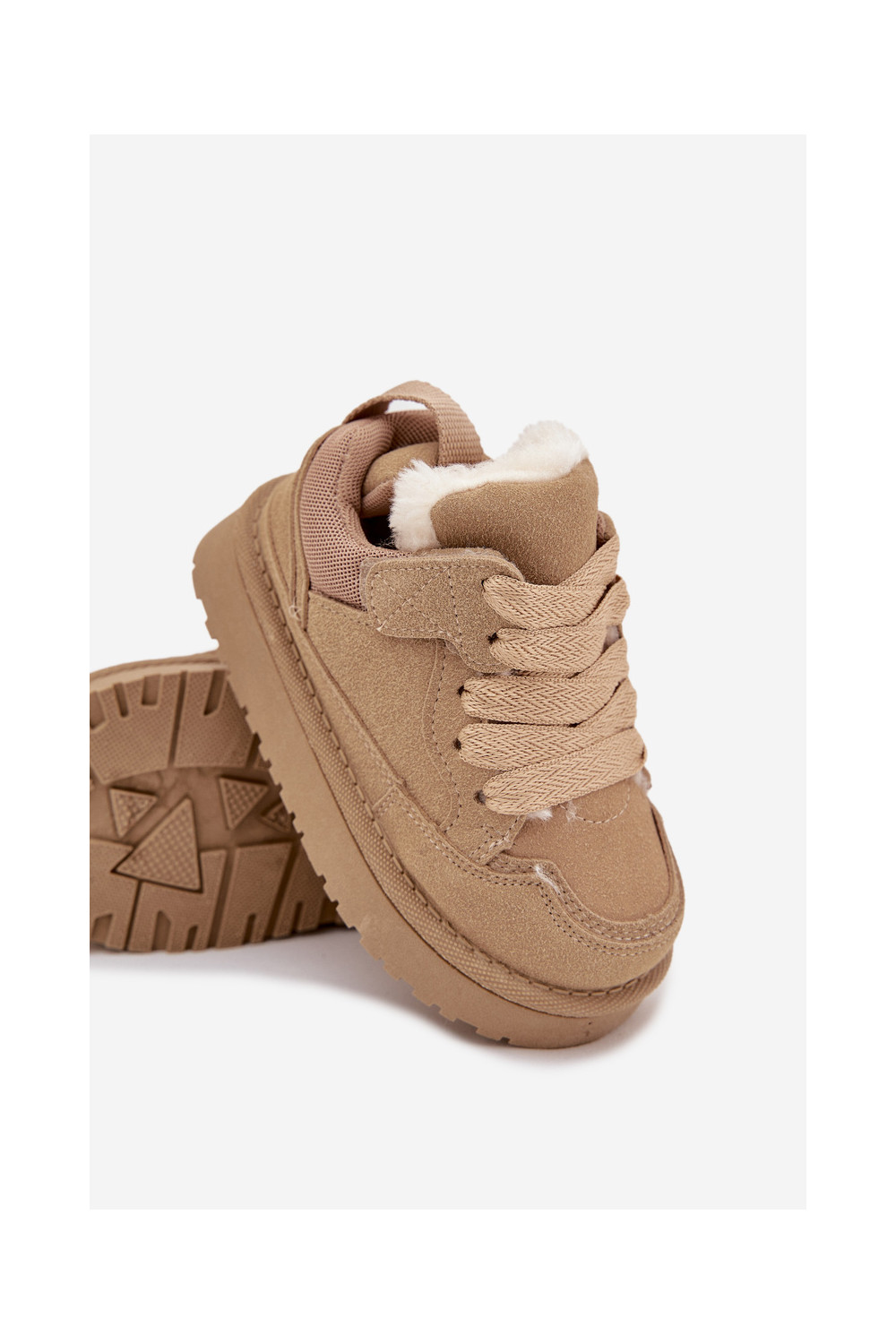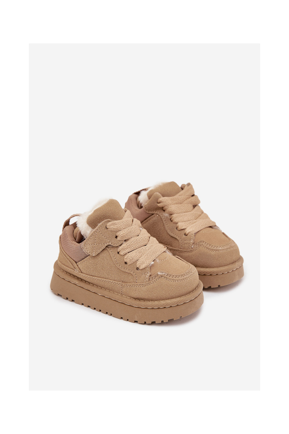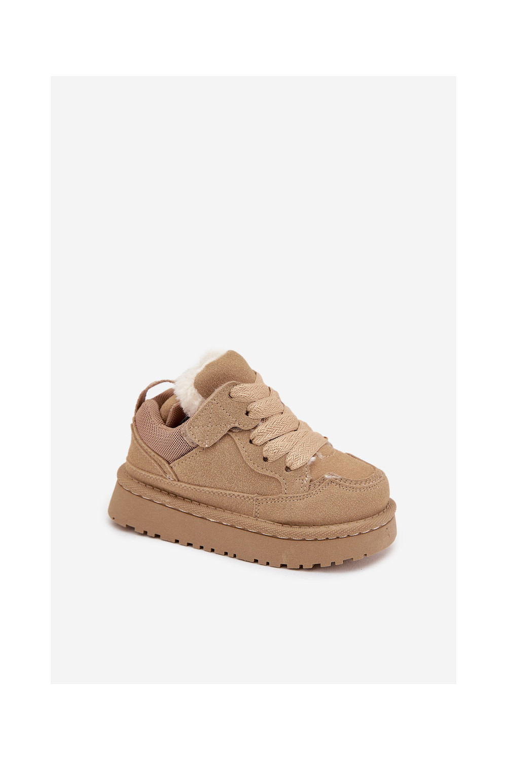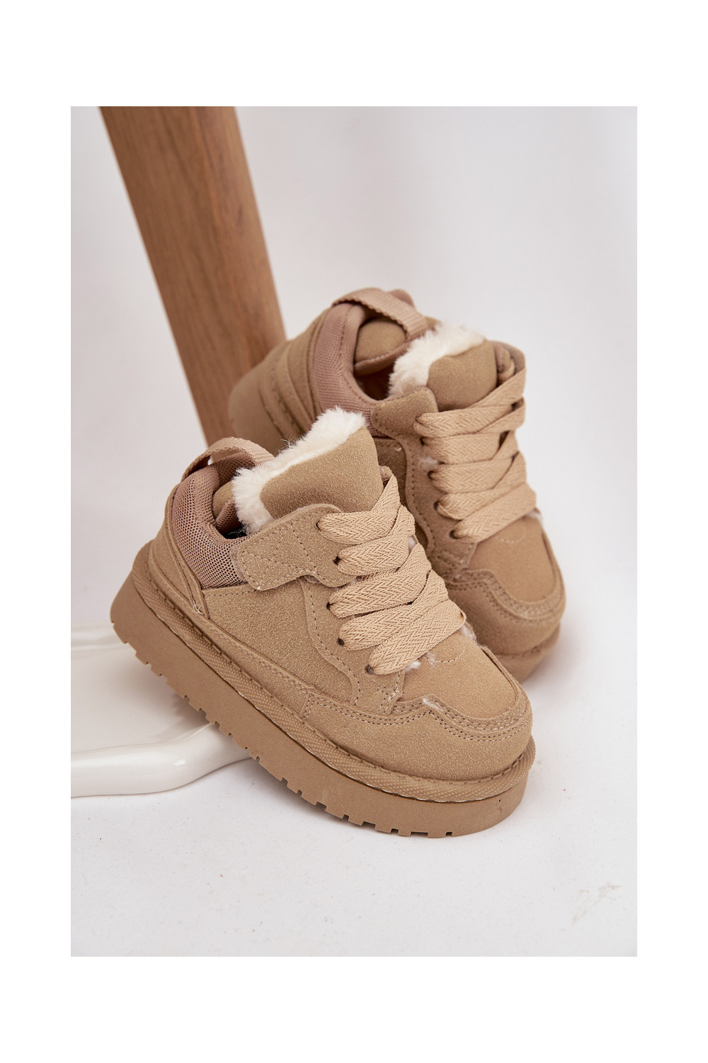 Smėlio spalvos šilti vaikiški sportbačiai su kailiuku viduje Mireen