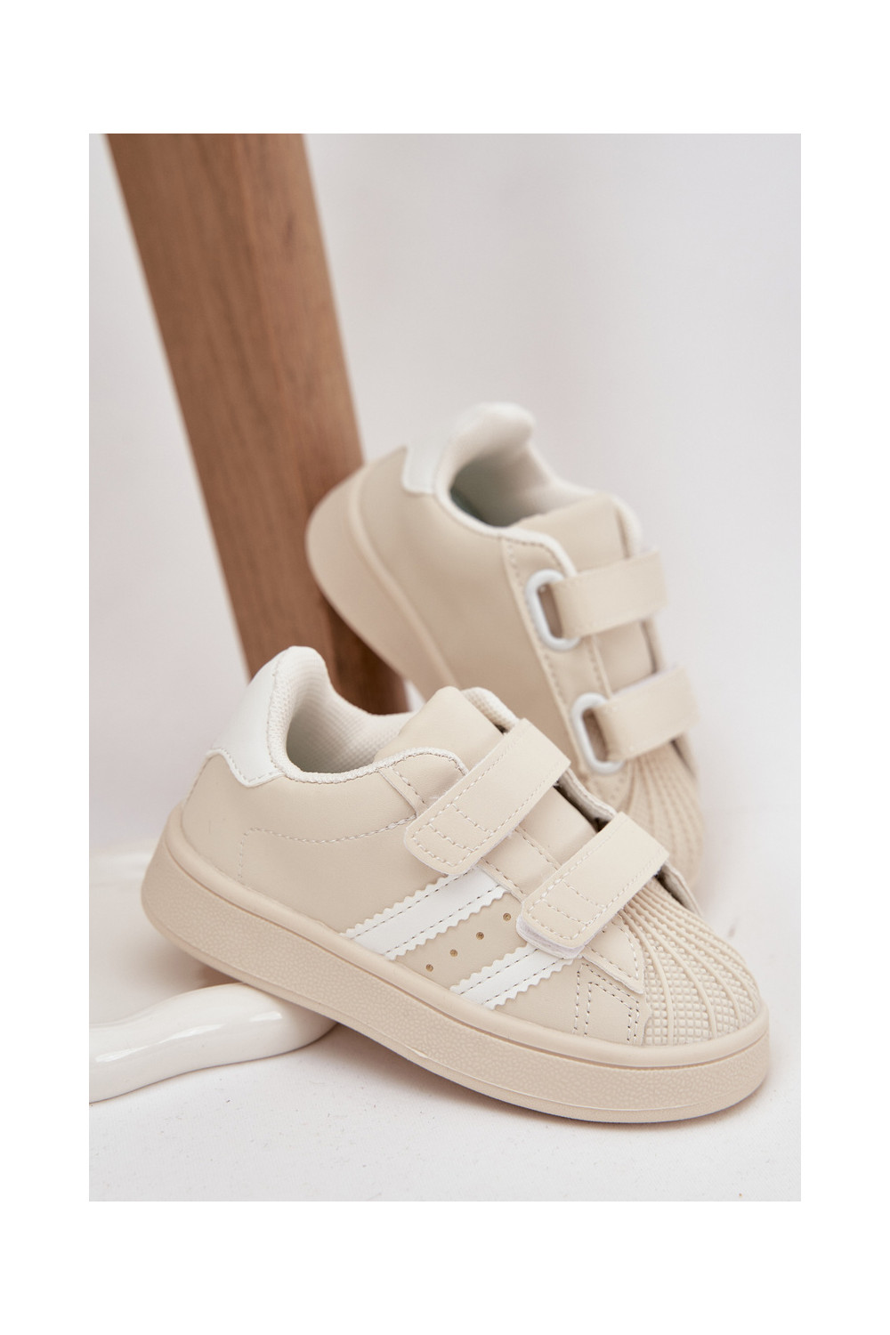 Vaikiški sportiniai bateliai Sneakers modelio batai iš eko odos smėlio spalvos Renel