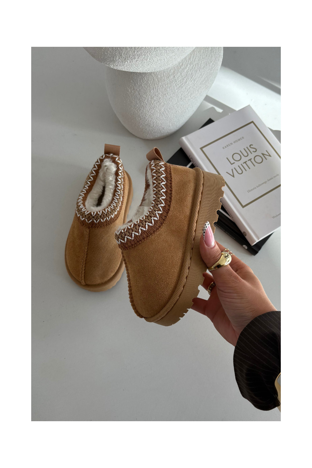 Vaikiški sniego batai su siuvinėjimu Prina, rudos spalvos