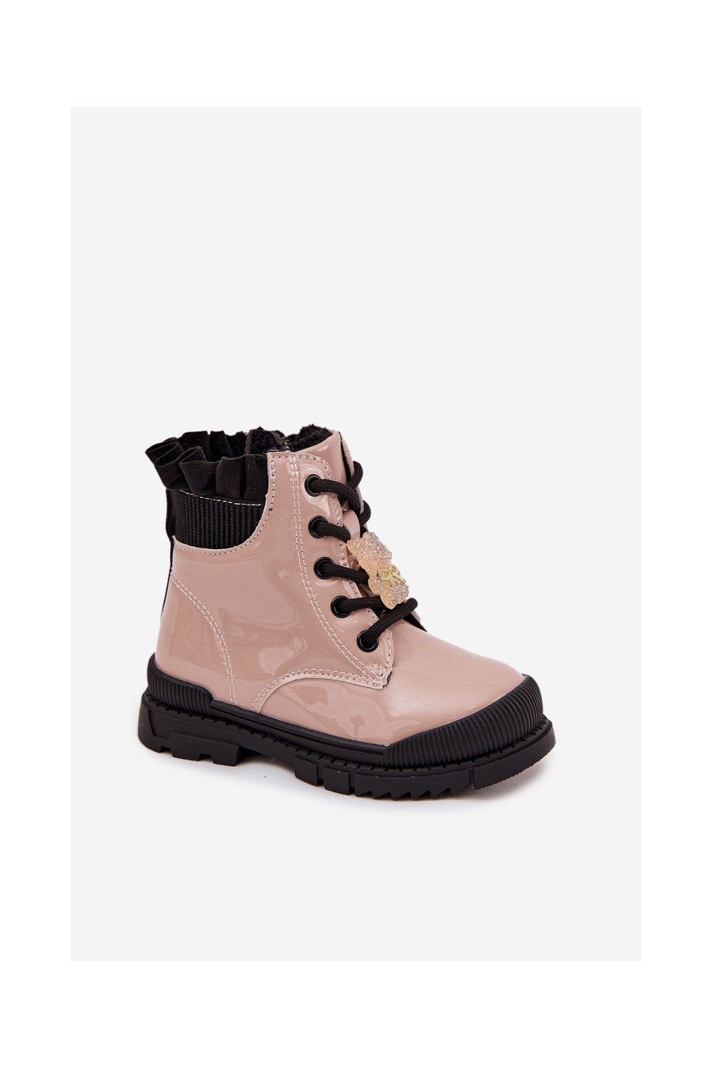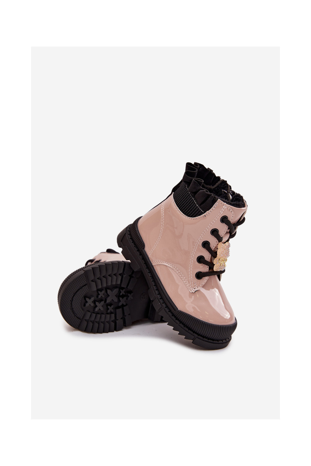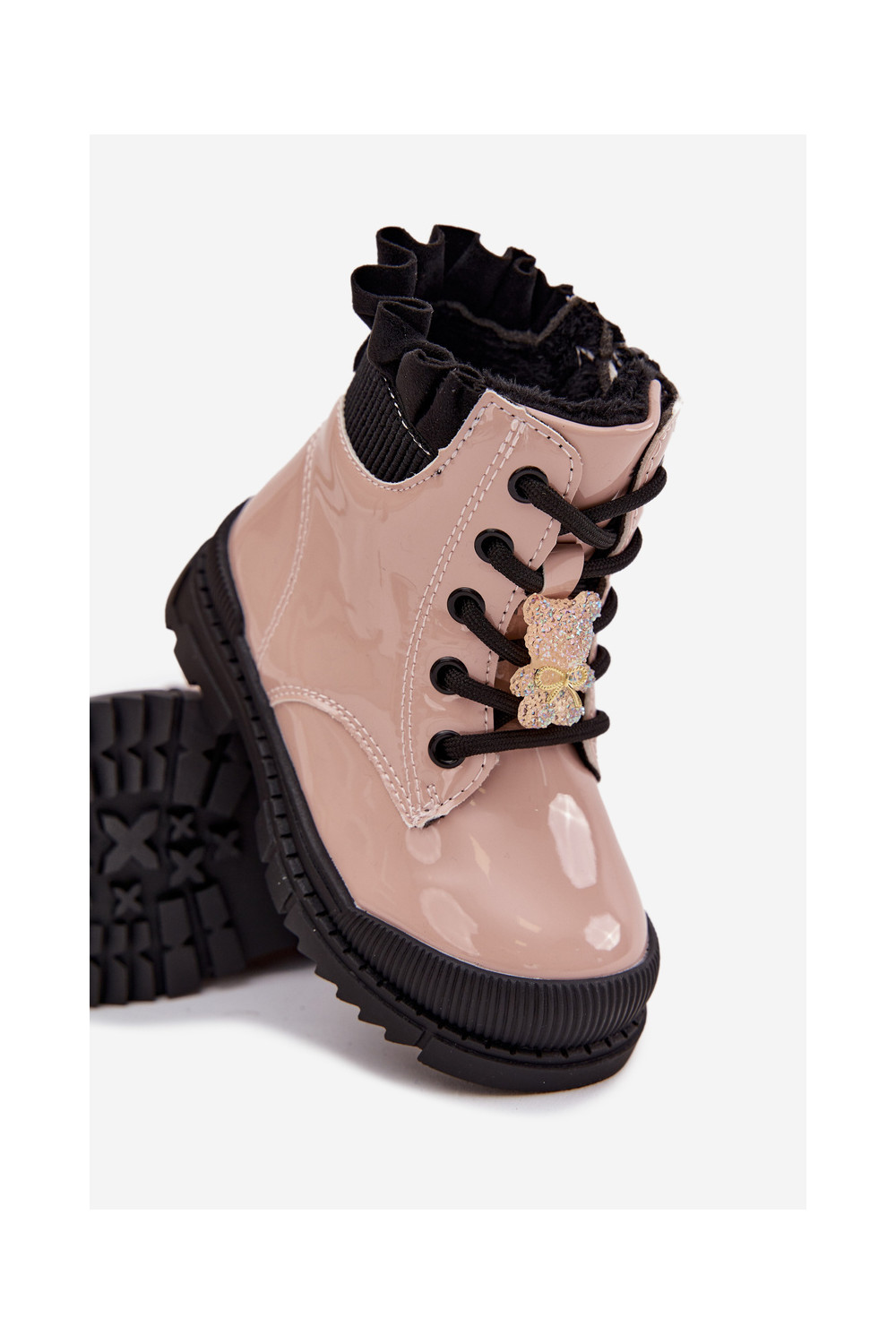 Vaikiški lakuoti šilti aulinukai su puošyba "Meškiukai" smėlio spalvos Fionessa