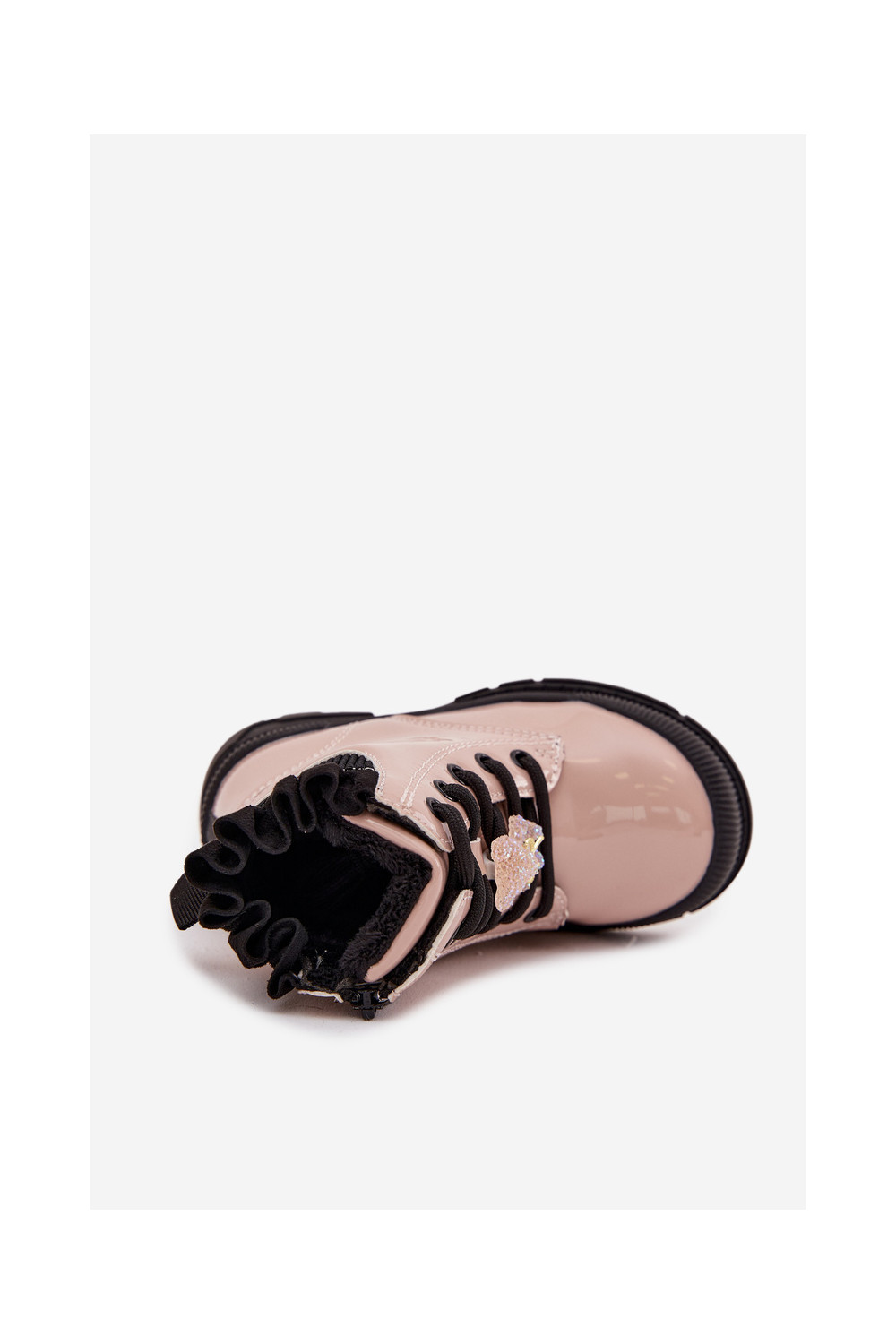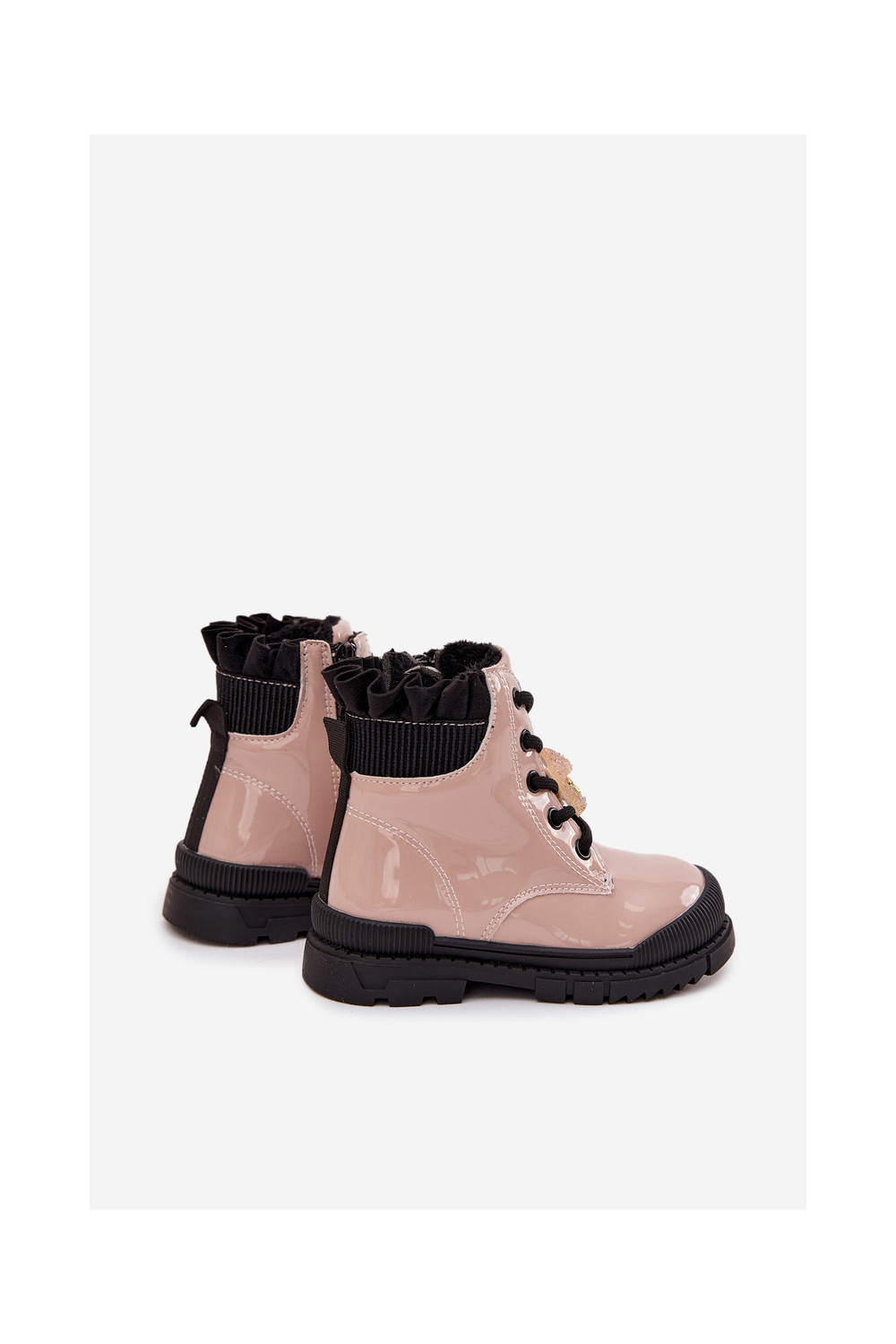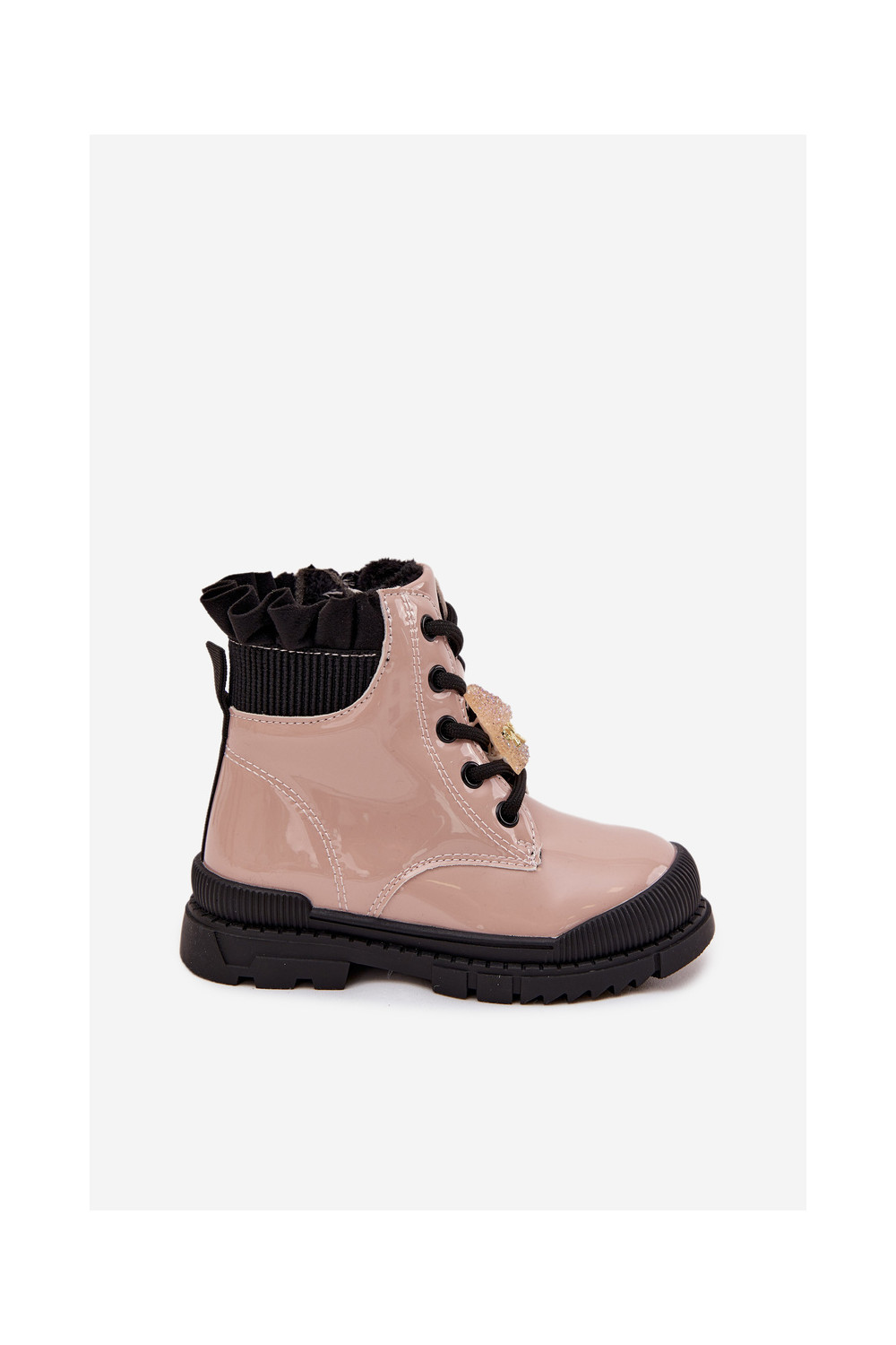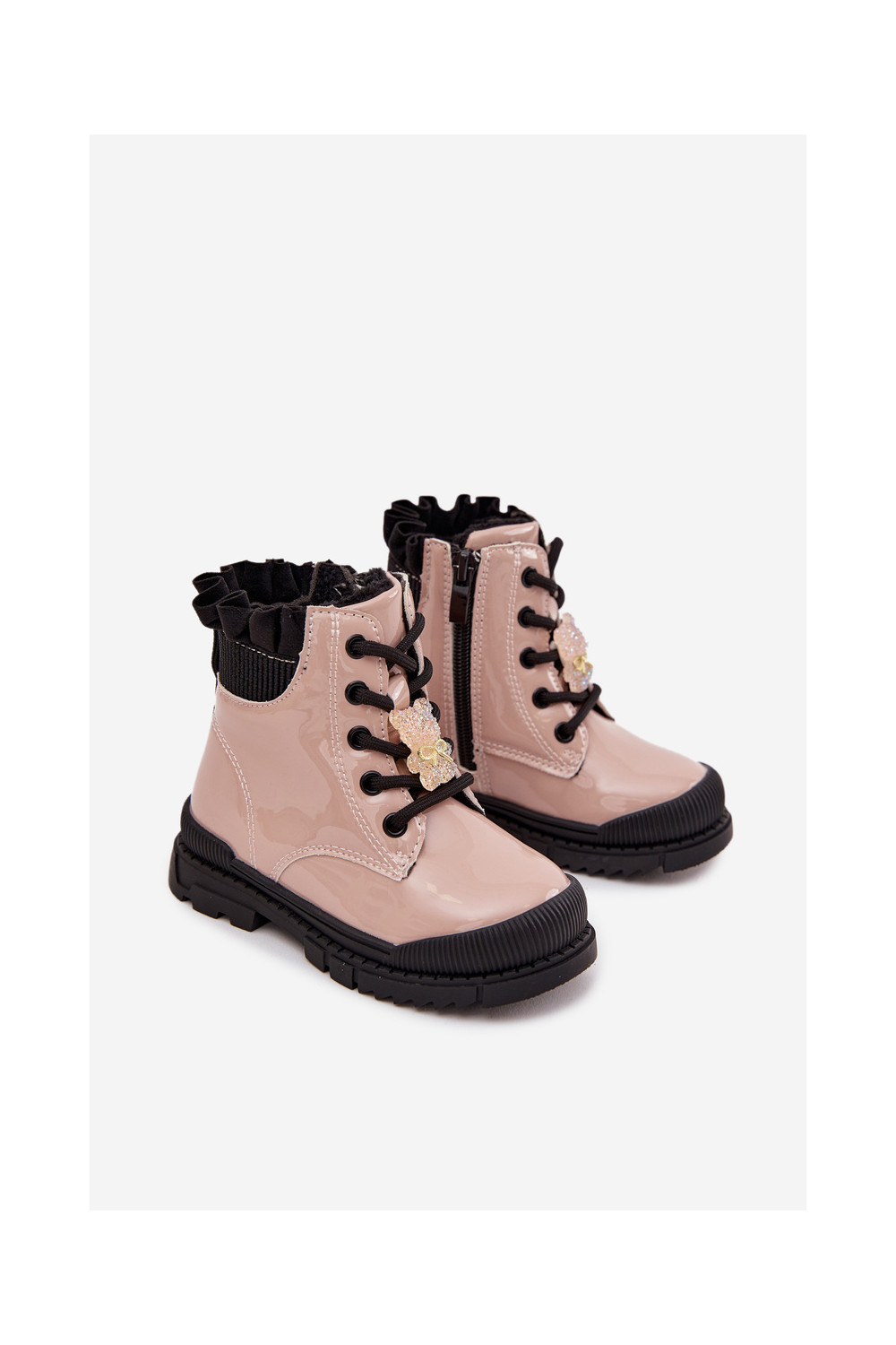 Vaikiški lakuoti šilti aulinukai su puošyba "Meškiukai" smėlio spalvos Fionessa