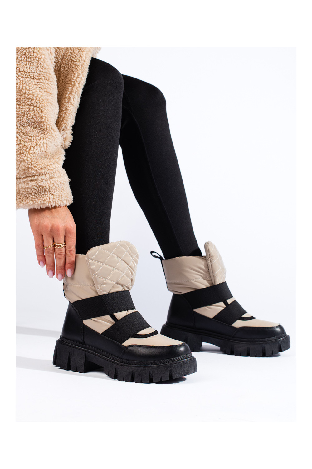 Moteriški sniego batai su masyvia platforma smėlio spalvos juodos spalvos